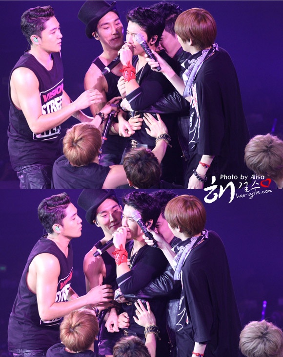 Tại tour diễn, các anh chàng đã biểu diễn các ca khúc đình đám, từng làm nên tên tuổi của nhóm. Đặc biệt, Super Junior còn khiến fan phấn khích khi có những hành động vui đùa, hài hước. Trong đó đáng chú ý nhất phải kể đến màn cưỡng hôn mà tập thể Super Junior dành cho thành viên Dong Hae và em út Kyu Hyun trong concert Malaysia vào ngày 23/11 vừa qua. Trước sự phấn khích của đồng đội, 2 thành viên trên đã vô cùng hoảng hốt và tìm mọi cách né tránh. Hình ảnh này khiến fan không khỏi bất cười.