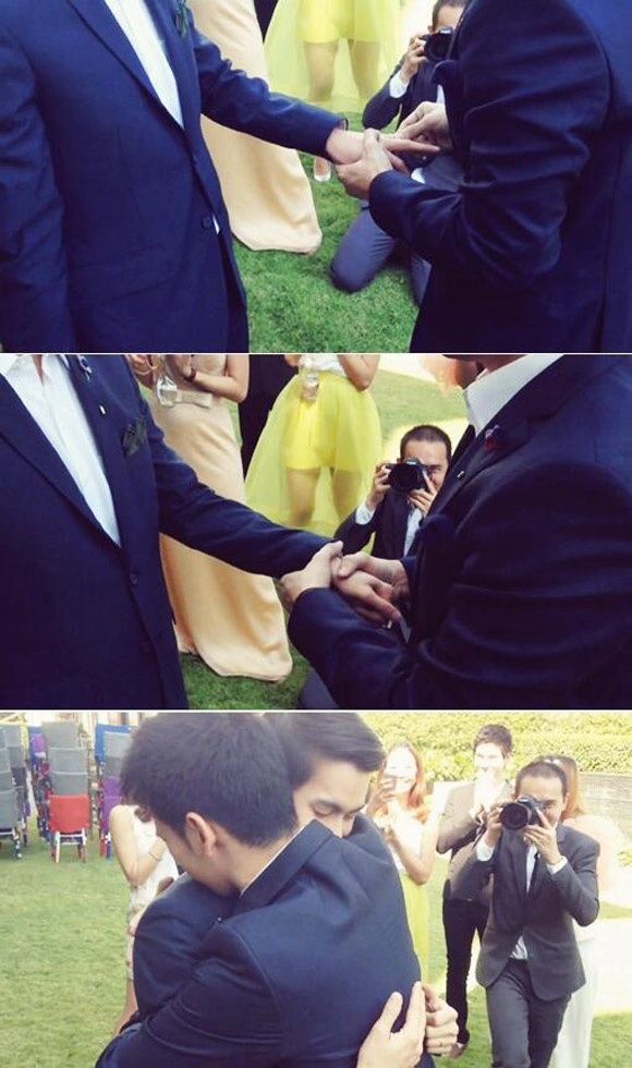 | Những hình ảnh về màn cầu hôn của hai chàng trai đồng tính tại Thái Lan đang được cư dân mạng truyền đi nhanh chóng. |