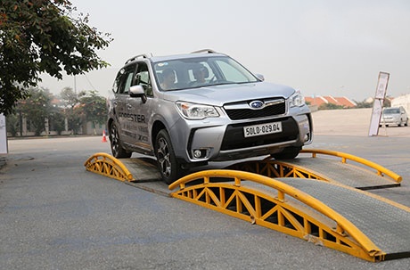 | Mẫu Forester mới với bài chạy thử một bánh không chạm đất. |