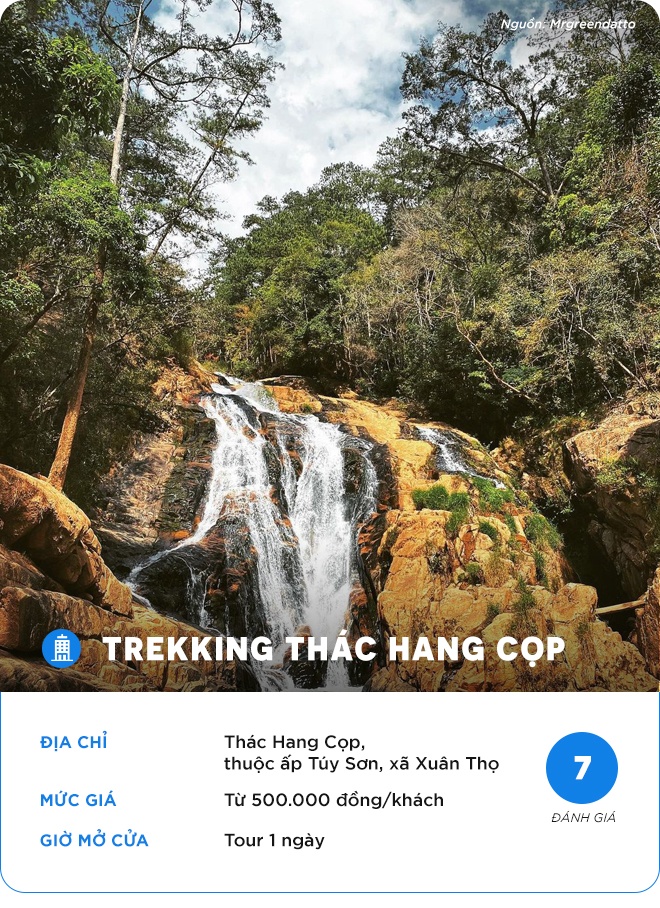 Thác Hang Cọp là địa điểm phù hợp cho những ai muốn khám phá một Đà Lạt hoang sơ, khác biệt. Bạn có thể tham gia tour trekking đến con thác này trong vòng một ngày. Trải nghiệm lội suối, băng đèo, vượt sông, đi cầu treo... du khách sẽ thực sự hòa mình vào núi rừng cao nguyên.