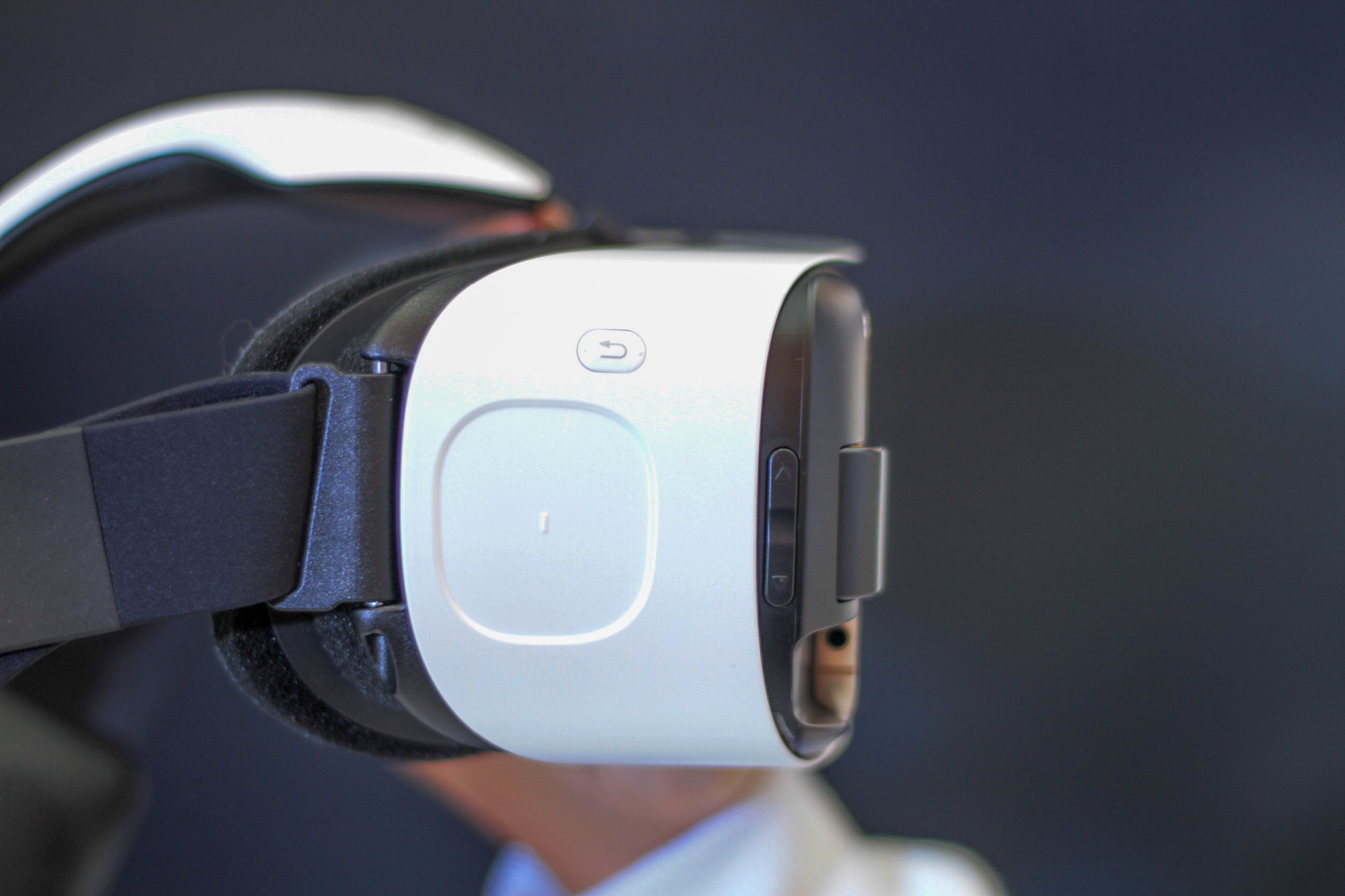 Cạnh phải là trackpad để điều hướng tương tự trên máy tính, phím Back ở phía trên, hai phím tăng giảm âm lượng được thiết kế khá mảnh. Các thao tác trên Gear VR cho tốc độ phản hồi nhanh và chính xác.