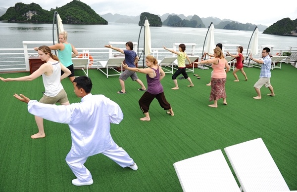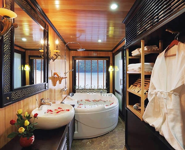 Tàu có phòng xông hơi (xông hơi khô, xông hơi ướt) spa massage phục vụ nhu cầu thư giãn của du khách. |