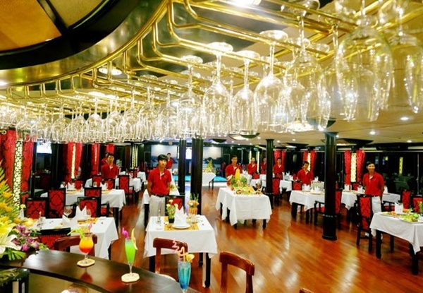Hệ thống nhà hàng trên thuyền sang trọng, các món ăn hấp dẫn. |