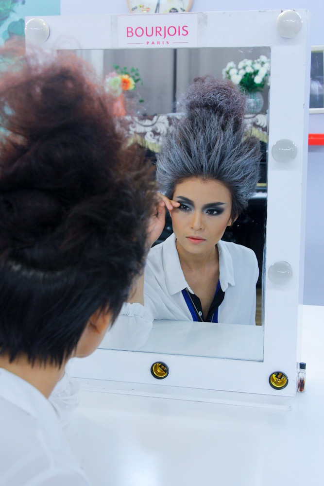 | Sau khi trang điểm xong, các thí sinh di chuyển đến một rạp hát và tại đây họ đã diễn xuất như những “bóng ma”, chuẩn bị đối diện với thử thách hóc búa kế tiếp. |