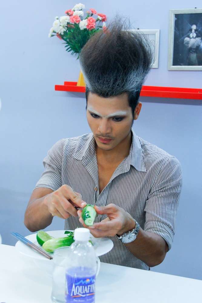| Tại nhà chung, Lê Văn Kiên là chàng trai đảm đang nhất, anh đã vào bếp nấu ăn cho các bạn trong thời gian chờ được trang điểm. |