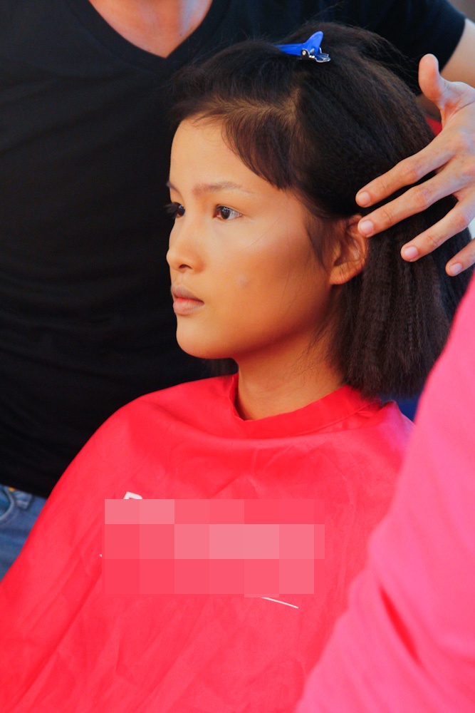 Trong lúc trang điểm, Chà Mi lộ vẻ mệt mỏi trên khuôn mặt.