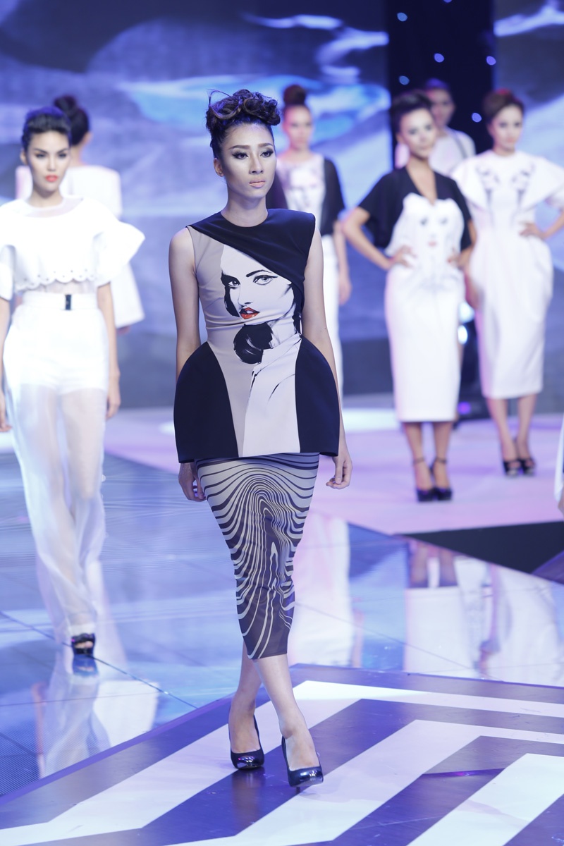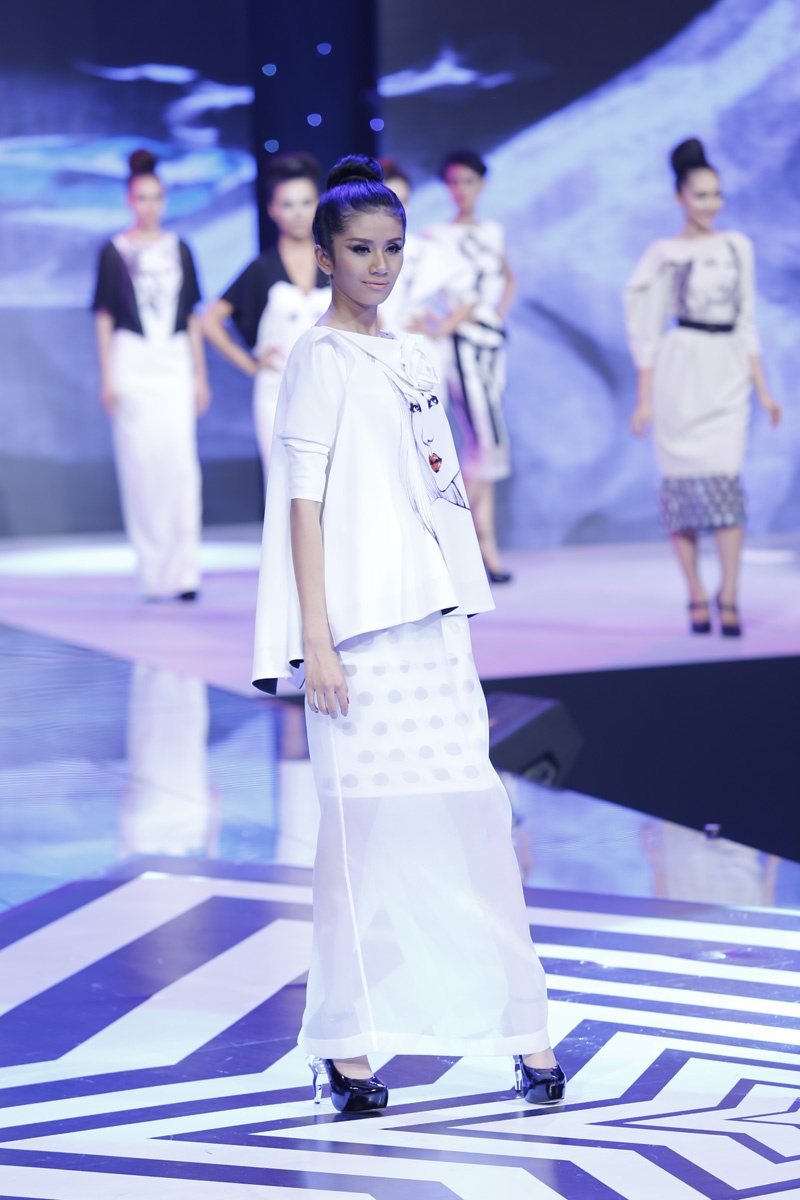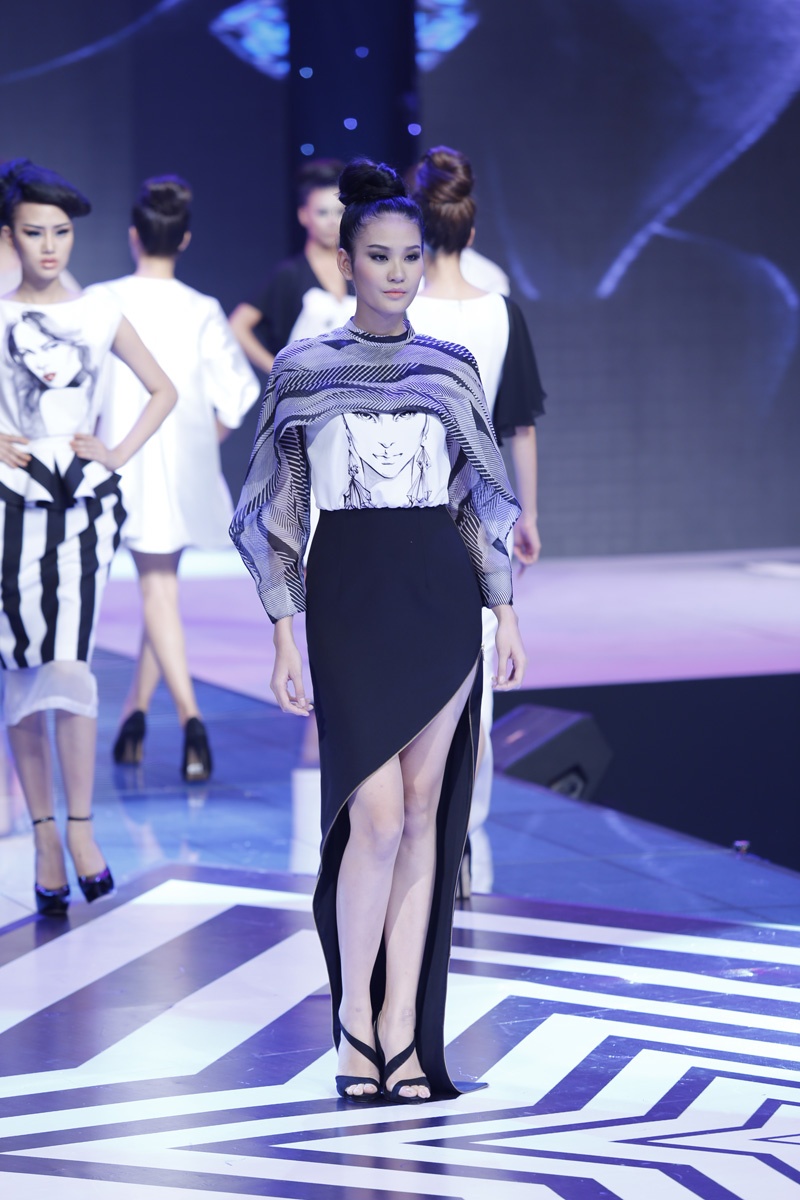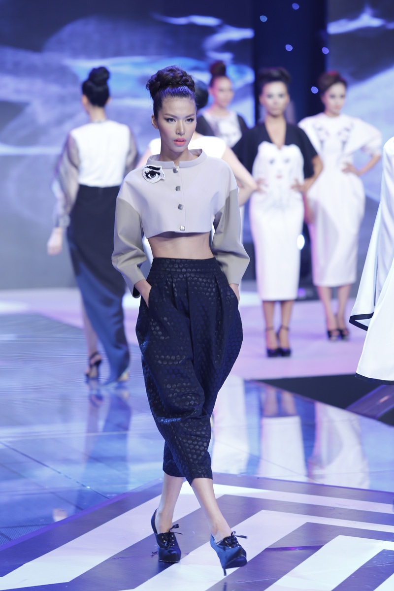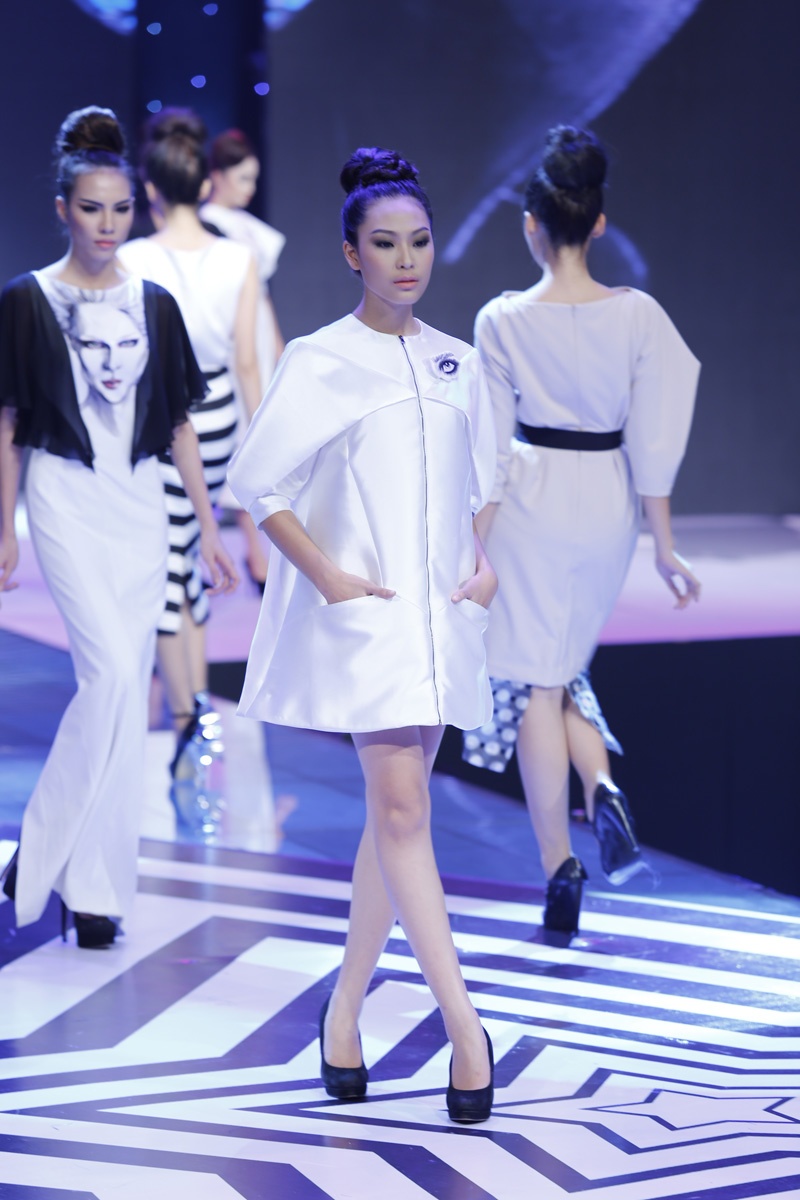| 25 thí sinh đêm chung kết Siêu mẫu Việt Nam 2013 bước vào màn thi trình diễn thời trang thứ 3, sau màn trang phục thể thao và áo dài truyền thống. Ở phần thi này, các thí sinh Siêu mẫu thể hiện BST thời trang của thương hiệu Kin by Công Trí. Các thiết kế có gam màu chủ đạo trắng đen. Trong đó, các thí sinh nam trình diễn với trang phục tông trắng. Thí sinh nữ đa dạng hơn với các sắc độ xám, đen, trắng. |