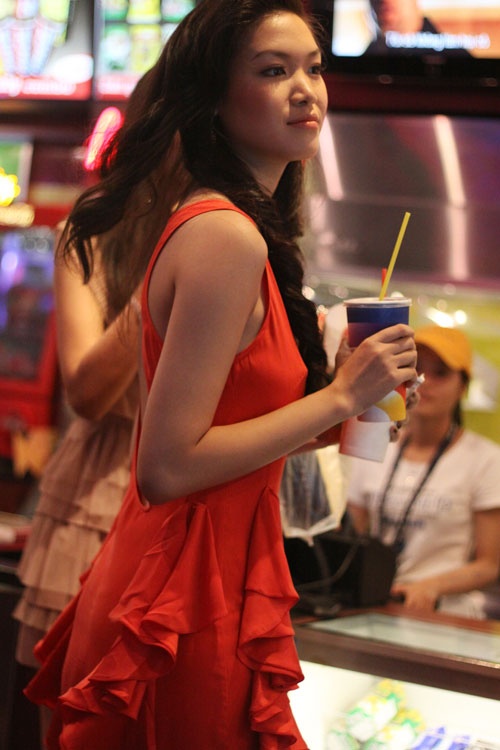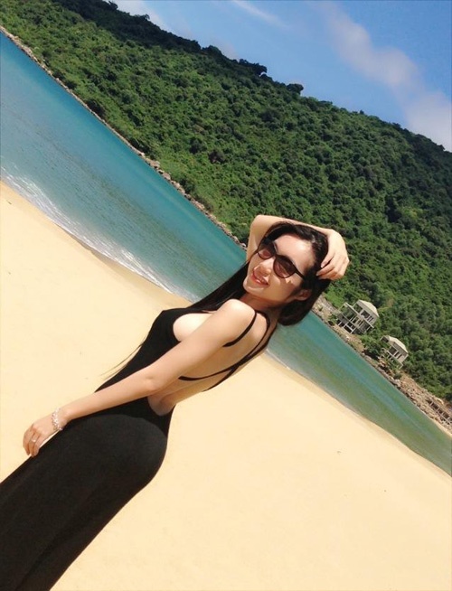 Hoa hậu Thùy Dung bị bắt gặp với chiếc đầm thả rông ngực.