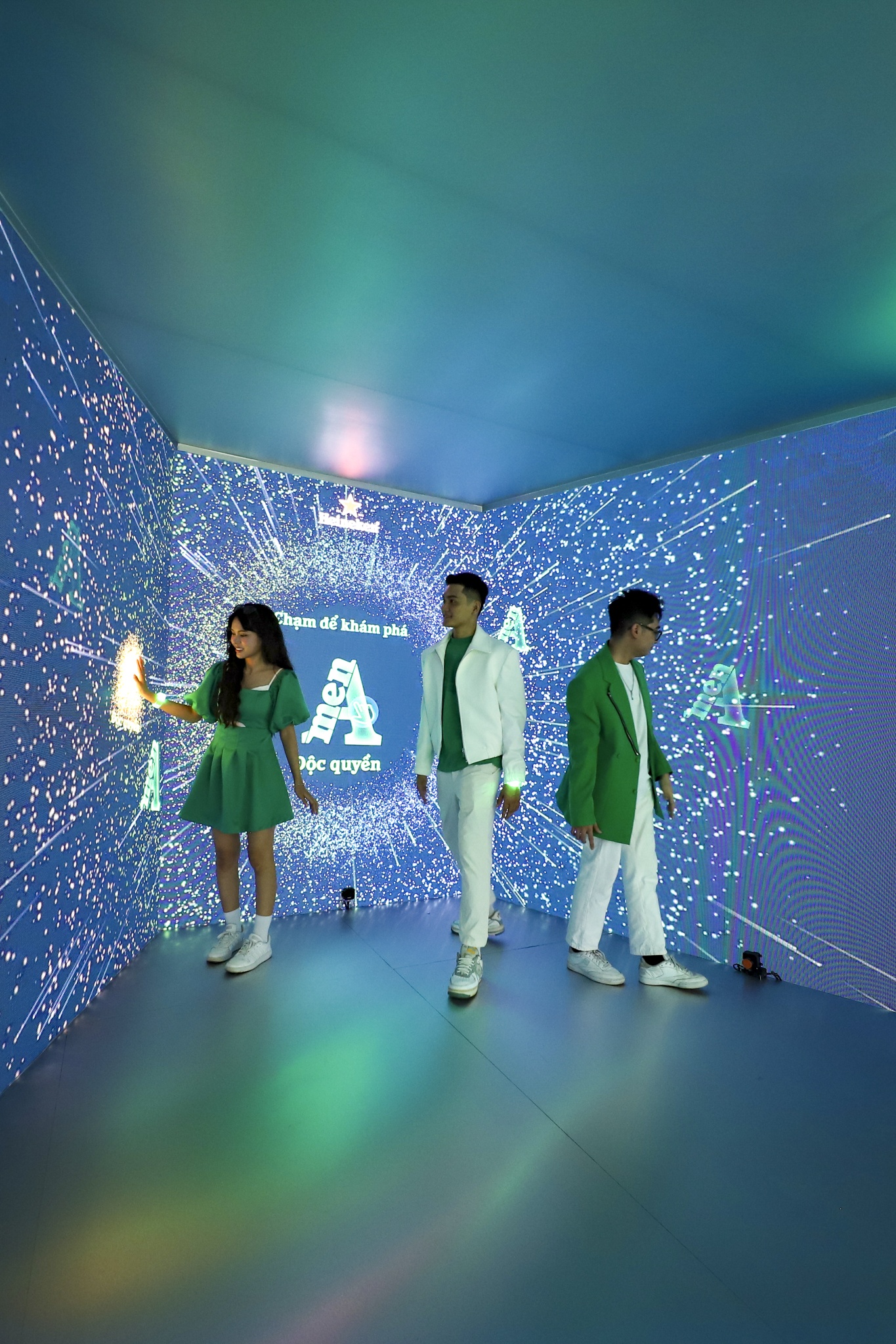 | Điểm tiếp theo của chuyến du ngoạn là khu vực Photobooth đa chiều, nơi khách tham gia có cơ hội khám phá hiệu ứng đường hầm đi đến chai bia biểu tượng của Heineken. Cả nhóm hứng thú check-in, ghi dấu từng khoảnh khắc đáng nhớ tại KenVerse. |