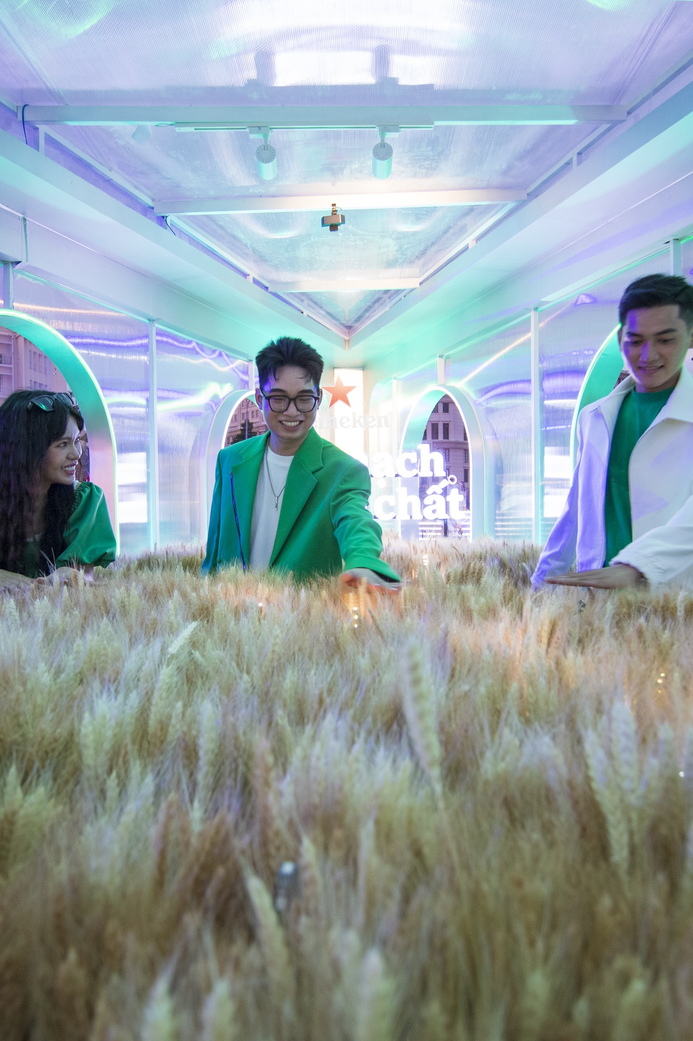 | Ra khỏi "thành phố" nhiều sắc màu, nhóm đến khu vực Siêu Lounge. Trải ra trước mắt chúng tôi một “cánh đồng đại mạch thuần chất” mô phỏng nguồn nguyên liệu chính tạo nên hương vị bia. Trải nghiệm tương tác ánh sáng độc đáo với cánh đồng đại mạch thu hút khá nhiều khách đến check-in. |