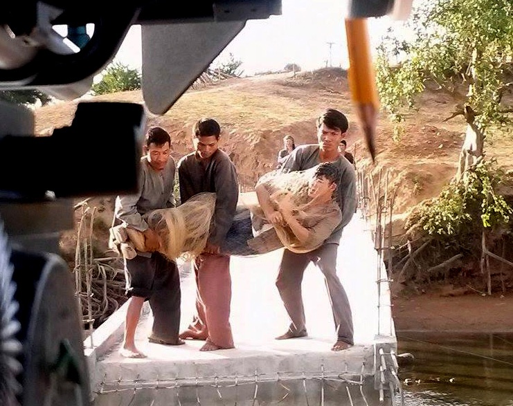 | Ngày 10/7, Trần Bảo Sơn phải vào cảnh quay người thanh niên về làng sau nhiều năm xa cách, muốn được hóa giải hận thù, nhưng bị trưởng làng kiên quyết không chấp nhận, vì thù xưa giữa ông với cha anh. Những mâu thuẫn đỉnh điểm tới mức trưởng làng ra lệnh cho thanh niên trai tráng trói anh lại, cuốn lưới và quăng xuống sông. |
