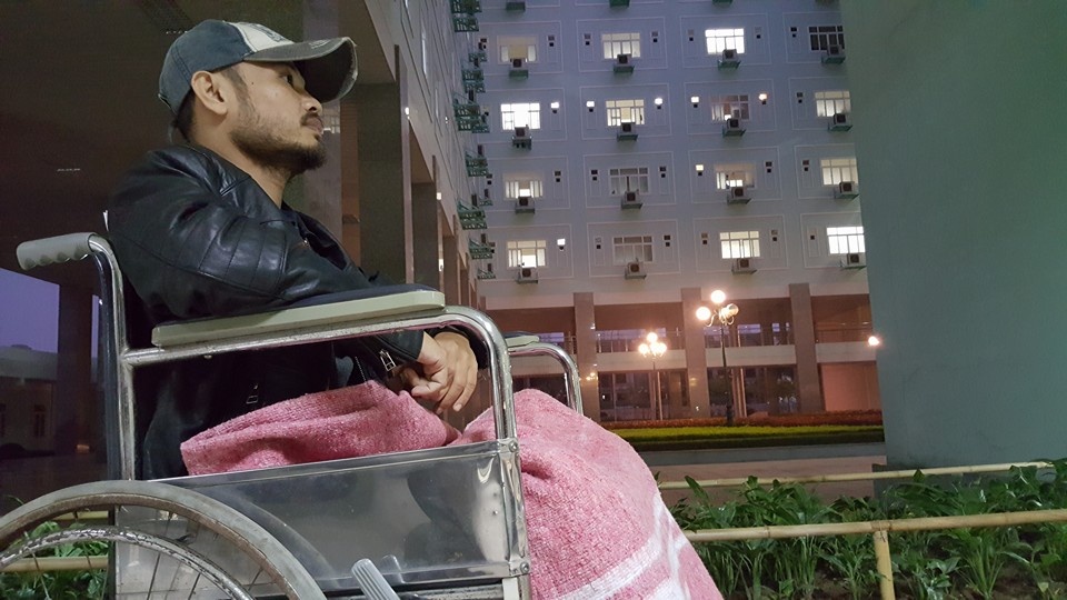 | Đăng tải hình ảnh mới trên trang cá nhân, Trần Lập chia sẻ: "Hậu cảnh không là rừng núi thiên nhiên hay những đỉnh đèo mây vờn gió thổi. Chỉ là khối nhà bệnh viện, đồ nhân tạo cao cao. Vậy mà vẫn đi ngắm hoàng hôn như hôm nào". |