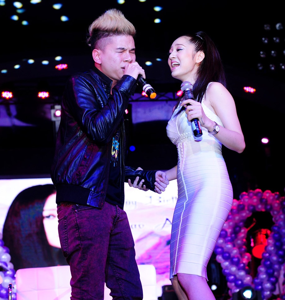 | Trương Quỳnh Anh cũng đến chúc mừng bạn thân Bảo Anh. Tuy đến muộn nhưng cô vẫn bị bắt lên sân khấu song ca cùng nữ ca sĩ. |