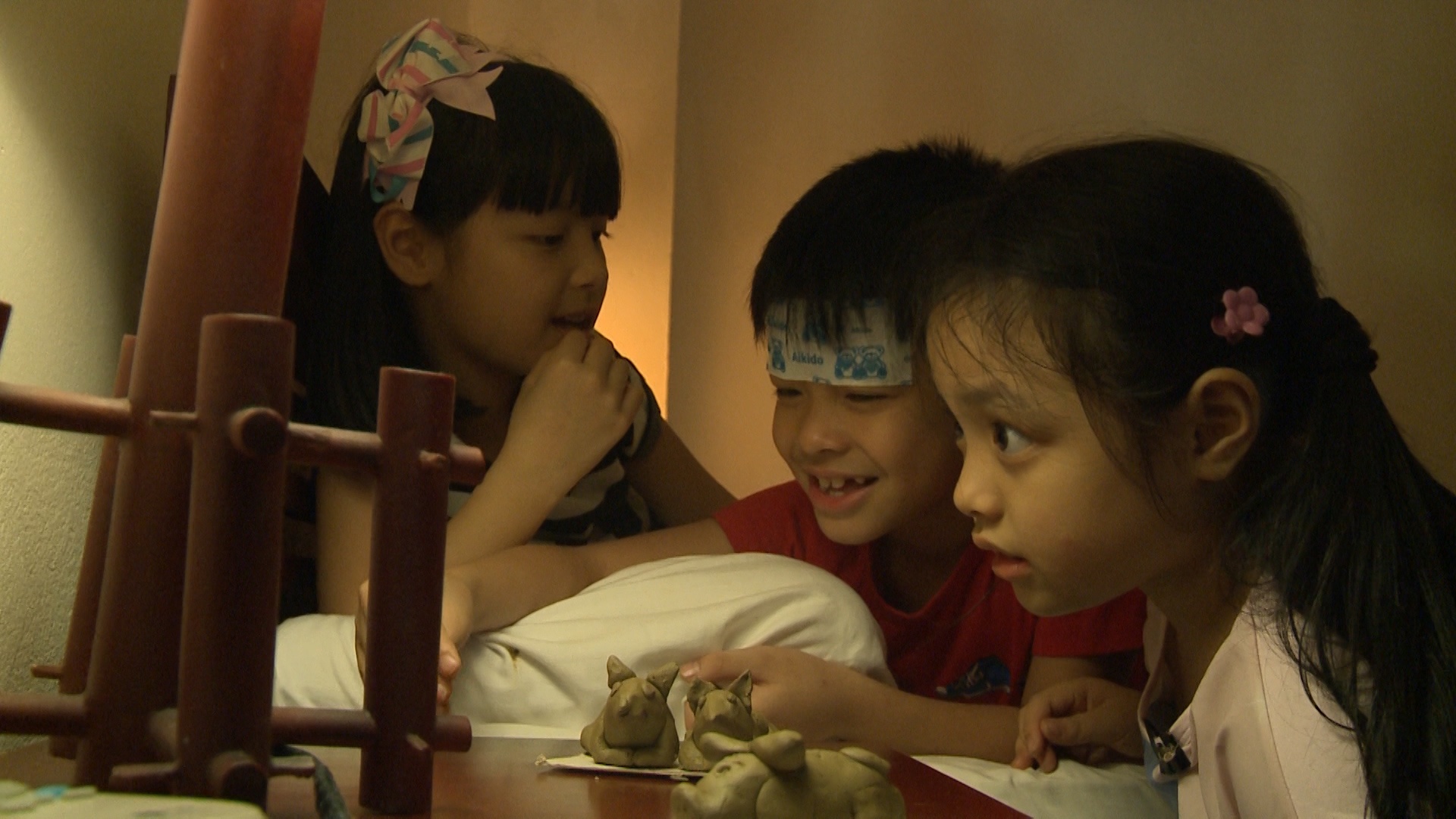 | Sau buổi biểu diễn, đạo diễn Trần Lực phải trở về Hà Nội vì gia đình có việc gấp. Vị đạo diễn không giấu được lo lắng khi để con trai đang sốt cao ở lại. Ông bố bốn con nhớ lại kỷ niệm cách đây vài năm khi anh phải để các con lại Đồng Tháp cùng ông bà ngoại và quay về Hà Nội. Vì sợ con đòi theo nên anh nói dối là đi họp và quay lại đón sau khiến Trần Bờm (bên trái) sắp xếp quần áo và ngồi đợi bố nhiều giờ đồng hồ. |