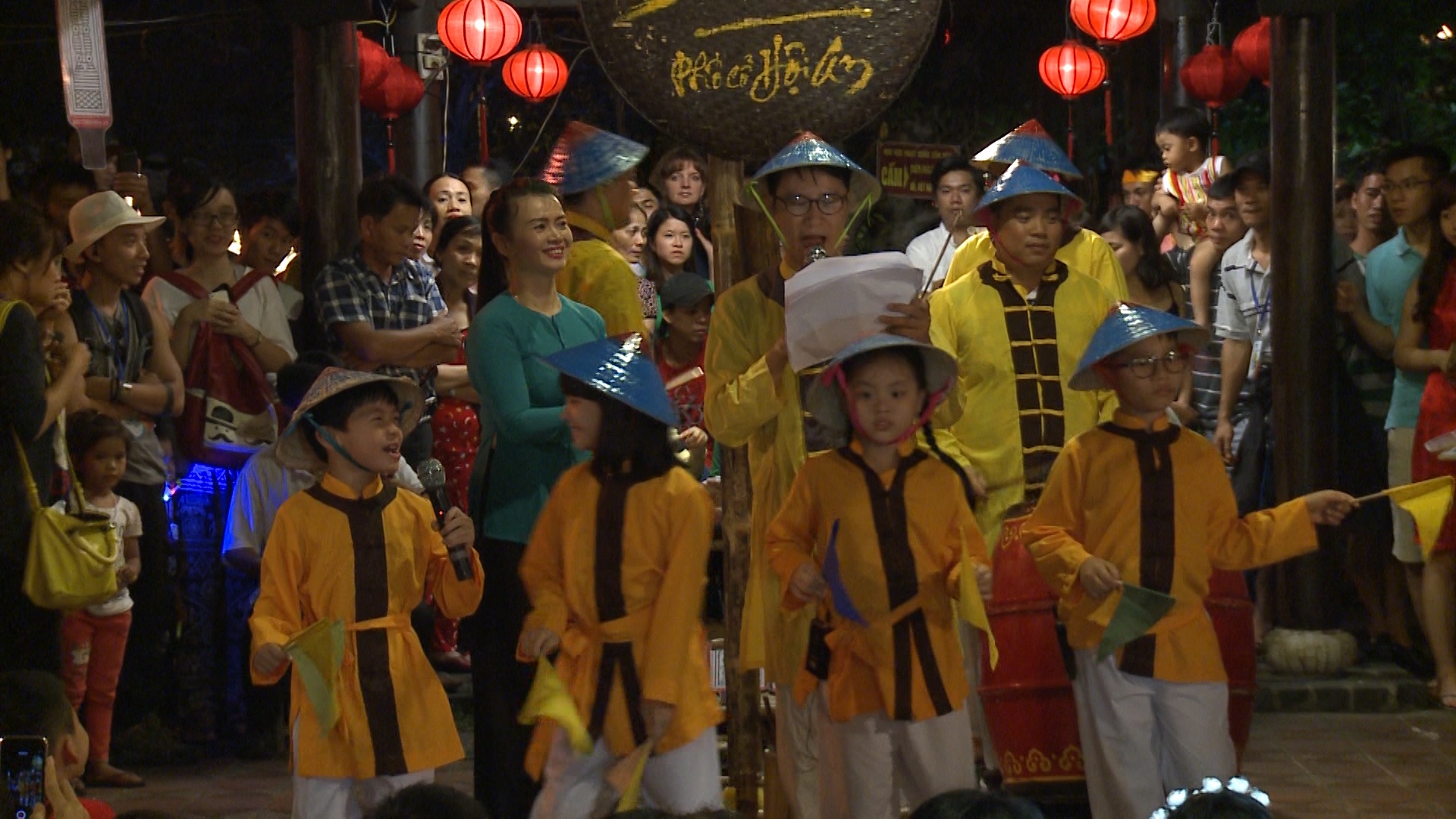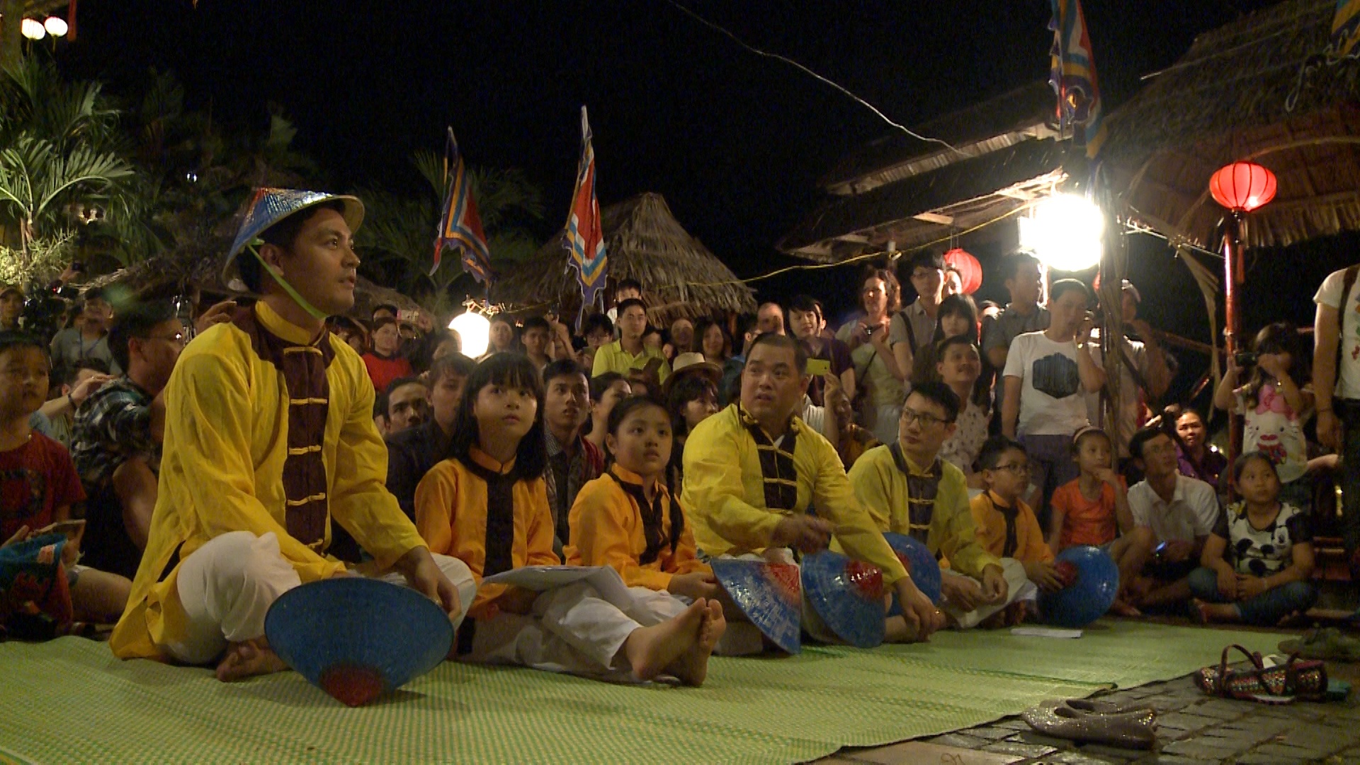 Tám bố con gửi tặng khán giả địa phương một bài chòi và ca khúc quen thuộc của chương trình Bố ơi, mình đi đâu thế?.