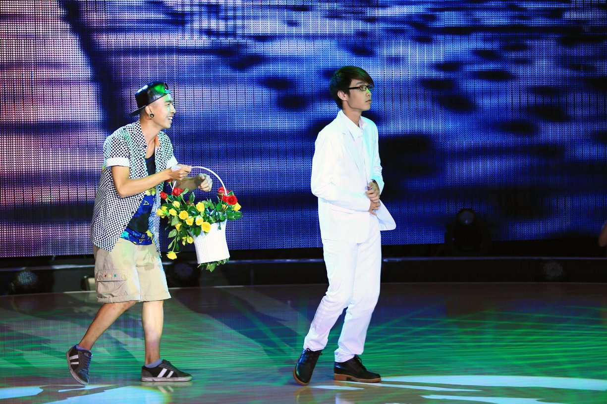 Mặc dù bất ngờ khi cùng lúc nhận được hoa từ hai vũ công điển trai, song Trần Ly Ly đã phản ứng rất nhanh và vui vẻ diễn theo để nhóm có thể hoàn thành trọn vẹn bài thi của mình. Sở dĩ cô tỏ ra ngạc nhiên vì lúc dàn dựng tiết mục này, người được cặp đôi popping hàng đầu Việt Nam dự định tặng hoa sẽ là Mỹ Linh. Thế nhưng, diva đã không kịp có mặt để trình bày hai ca khúc Tóc ngắn và Để mãi gần anh trong phần thi của nhóm bởi một số lý do khách quan nên họ đành chuyển hướng sang giám khảo Trần Ly Ly. |