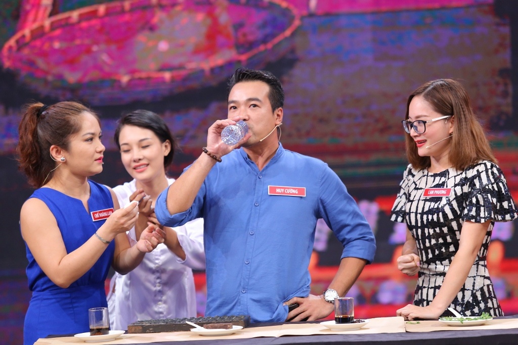 MC điển trai dành tặng người chơi 2 chữ "xuất sắc" vì anh chỉ thử được một món đã buồn nôn vì quá đắng. Trong khi đó, Huy Cường đã ăn hết 10 món như ca cao đắng, rau đắng, trà đắng, khổ qua rừng đắng, lá lằn đắng... |