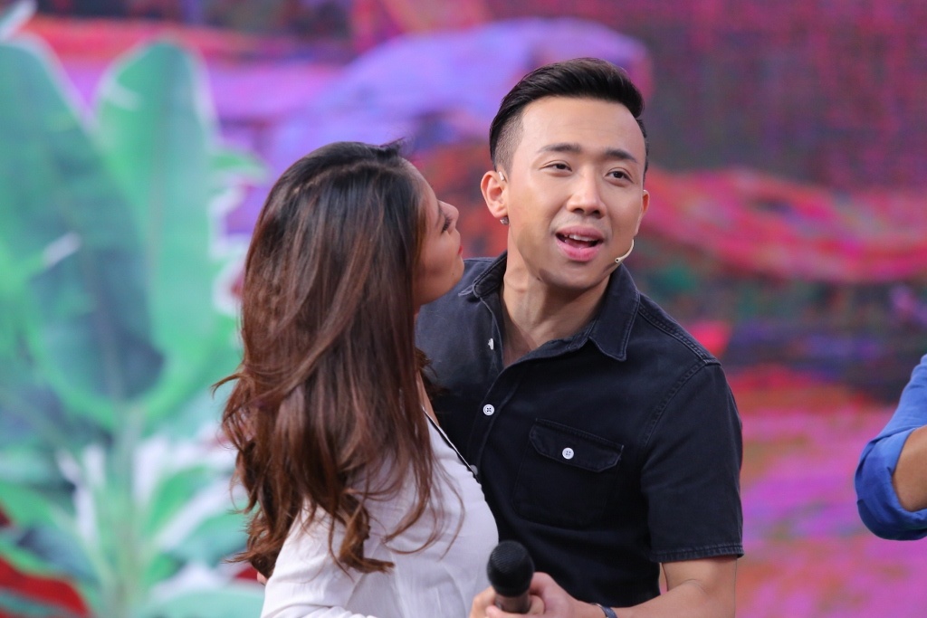Trấn Thành phạt Anh Vũ phải ôm Nam Thư thật chặt, trước sự bối rối của bạn thân, kiều nữ làng hài giải vây cho anh bằng việc "cưỡng hôn" MC điển trai. |