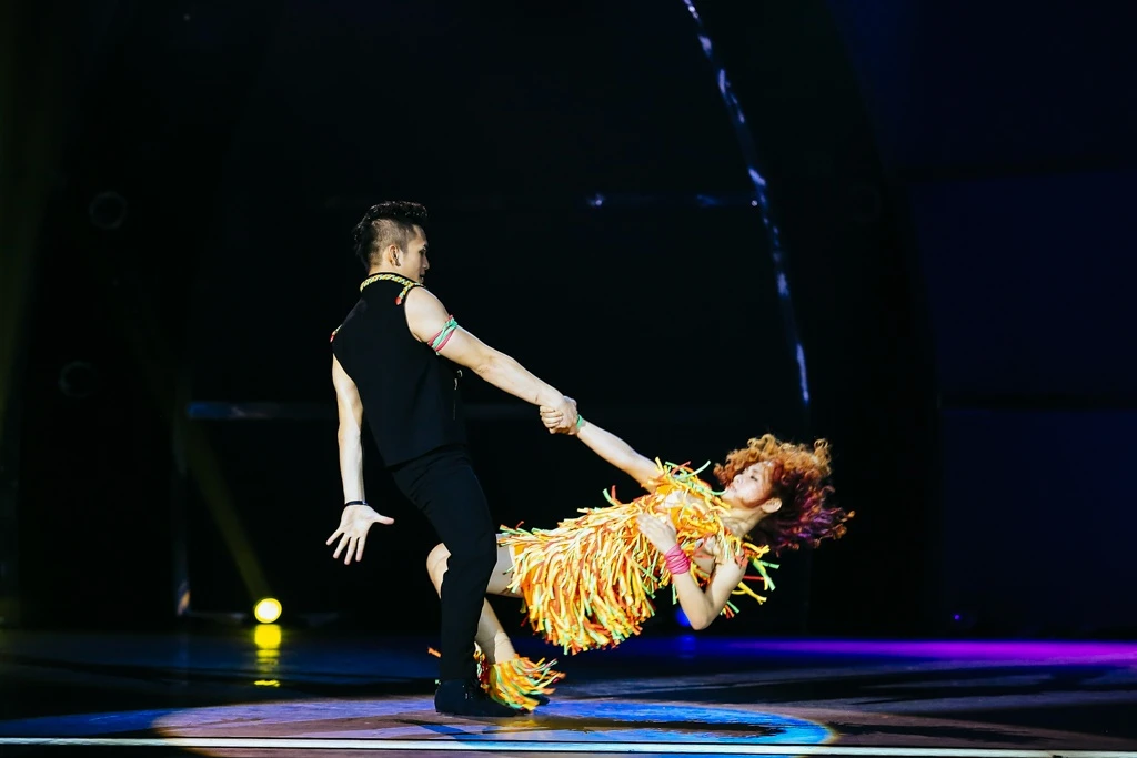 Trong đêm chung kết Thử thách cùng bước nhảy tối 12/12, các vũ công lần lượt kết hợp trong 6 tiết mục. Hữu Phước và Hà Lộ được biên đạo John Huy hướng dẫn điệu jazz hài hước làm khán giả có mặt ở trường quay cười nghiêng ngả. |