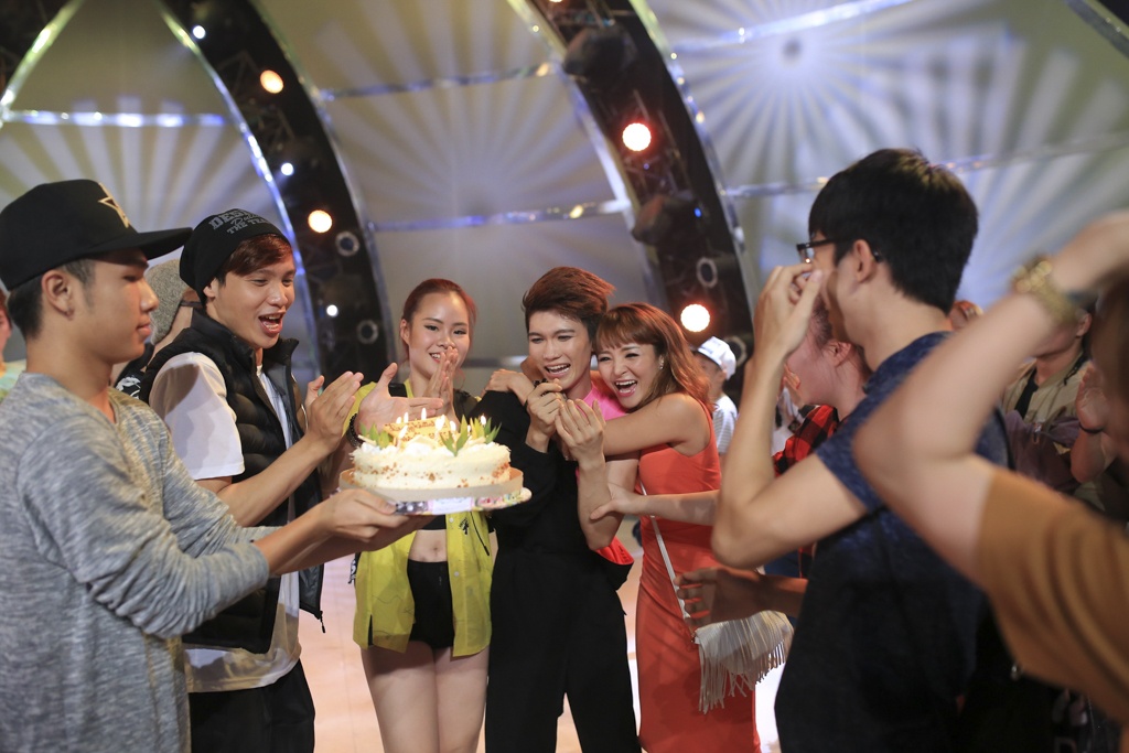 Sau đêm thi, các vũ công trong top 20 đã bị loại trước đó tệ tựu trên sân khấu để chúc mừng sinh nhật Hà Lộc. Chàng trai đến từ Cần Thơ quá đỗi bất ngờ trước tình cảm của đồng nghiệp dành cho mình. |
