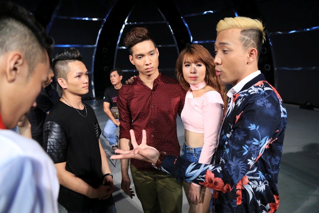 Trấn Thành "ăn miếng trả miếng", ngay lập tức đáp lời Dũng "khùng": “Vâng, em nghĩ anh cũng nên tập trung vào nghề đạo diễn thôi”. Màn tung hứng của 2 nhân vật nổi tiếng giúp các thí sinh phần nào giải tỏa căng thẳng và áp lực. |