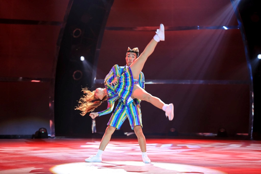 Thu Hương - Hà Lộc được John Huy biên đạo bài múa đương đại với nhiều tạo hình đẹp mắt và lấy đi nhiều cảm xúc từ khán giả. Tuyết Minh thừa nhận, cả 2 tạo thành biểu tượng âm dương hòa hợp và thực hiện những bước nhảy đẳng cấp. |