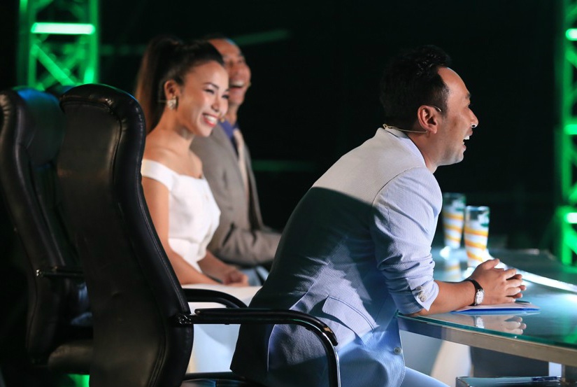 Liên tục bắt nạt giám khảo nhưng đôi khi MC 8X bất ngờ bị công kích lại. Chí Anh và Tuyết Minh "trả đũa" Trấn Thành khi nghi ngờ giới tính thật của anh. Trong khi đó, Quang Dũng cho rằng MC điển trai "đang bị làm sao" nên những màn tung hứng trở nên khó hiểu. Trước sự đoàn kết của bộ ba giám khảo, chàng MC đa tài chỉ biết cười trừ. |