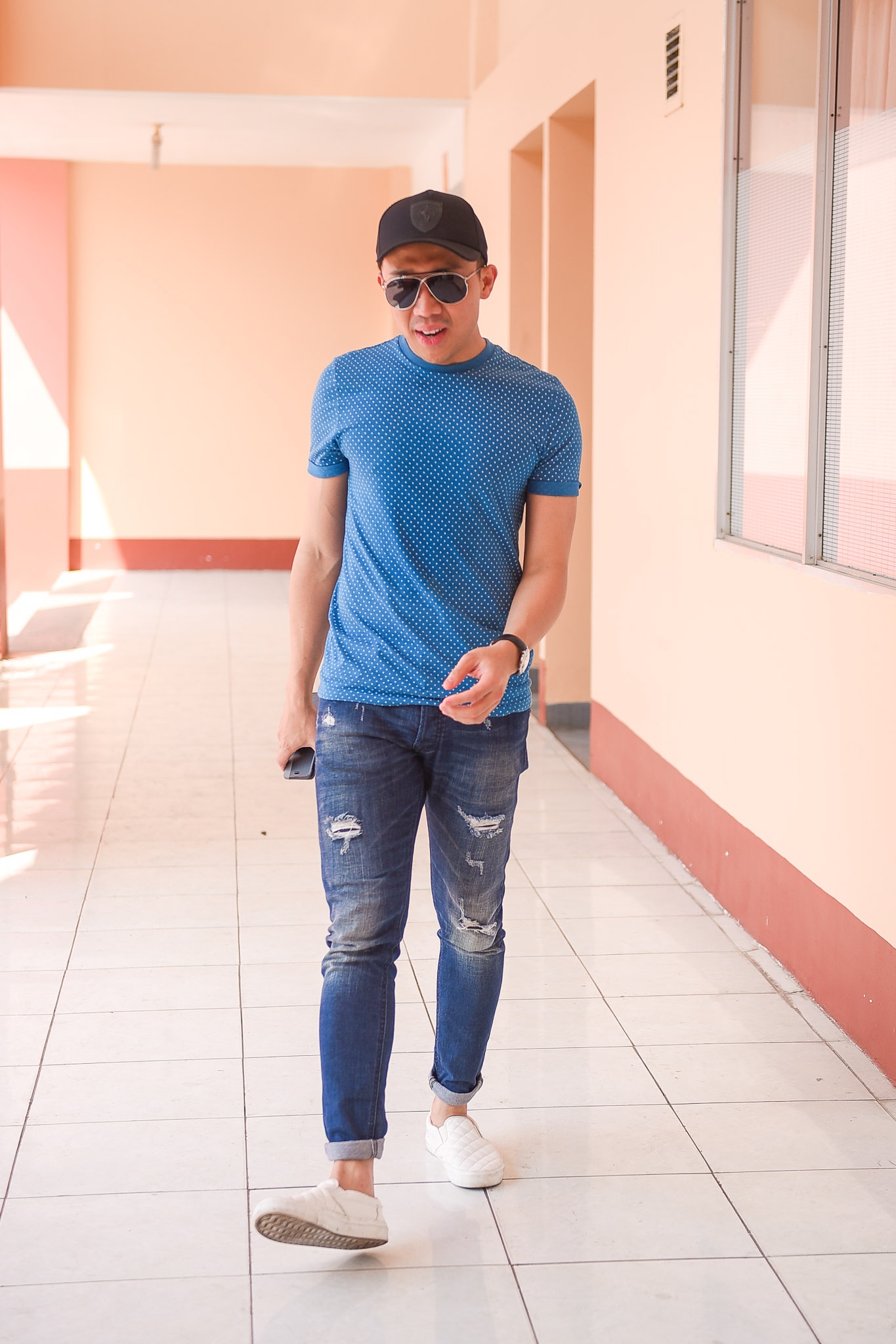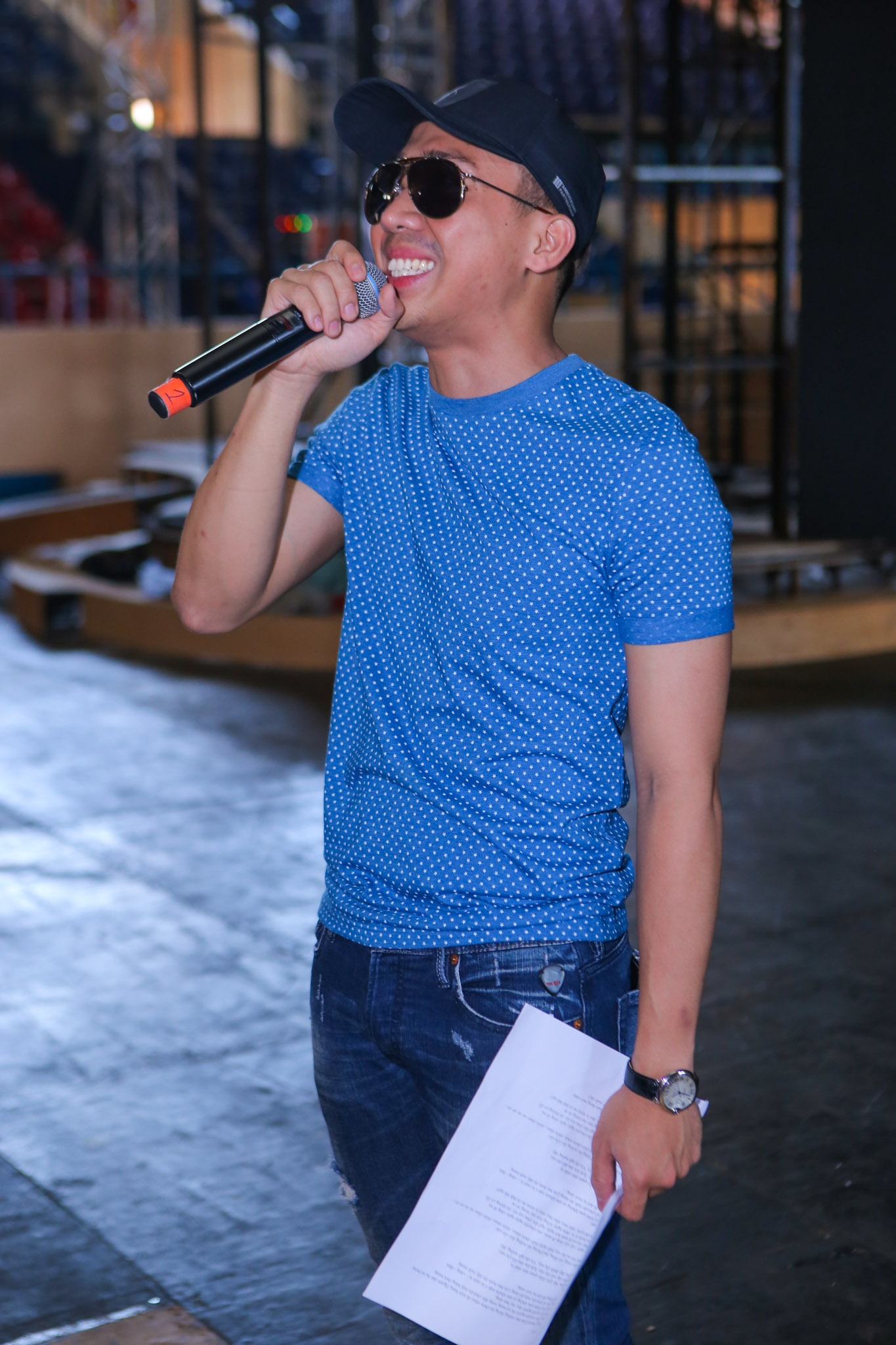 Sau buổi tập, Trấn Thành nhanh chóng ra về vì anh còn lịch diễn. MC 8X ăn mặc đơn giản, trẻ trung. |