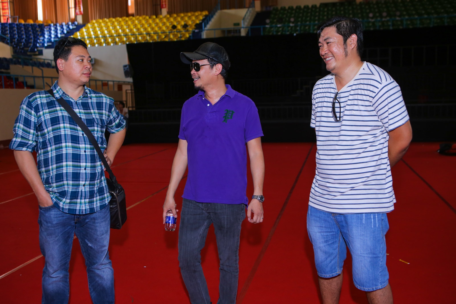 Trấn Thành có mặt ở buổi tập từ khá sớm để trò chuyện cùng giám đốc âm nhạc Nguyễn Hải Phong. Nam nghệ sĩ tiếp tục dẫn dắt lễ trao giải cùng Hà Lê và Phúc Bồ. |