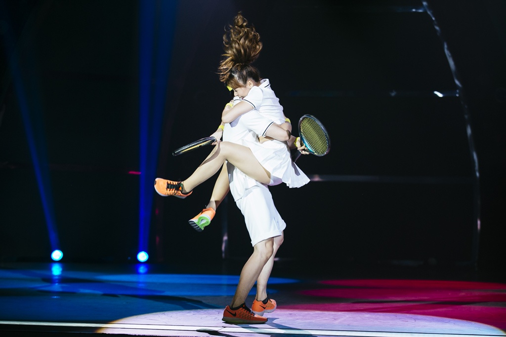 Trên nền ca khúc Sorry của Justin Bieber, tiết mục của Lan Nhi - Sơn Lâm được vũ công Tatiana biên đạo, lấy cảm hứng từ bộ môn tennis. Đôi nam nữ trong bài dựng thể hiện tinh thần vui vẻ của một trận cầu giao hữu. |