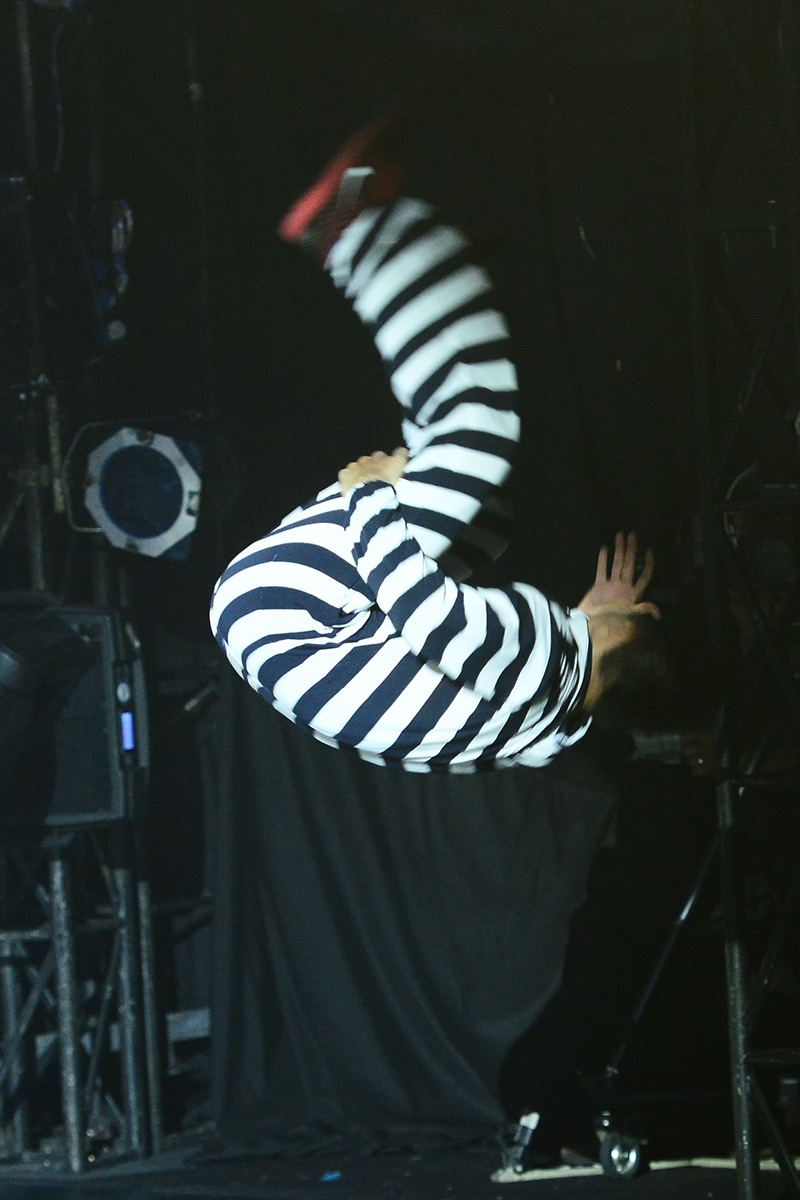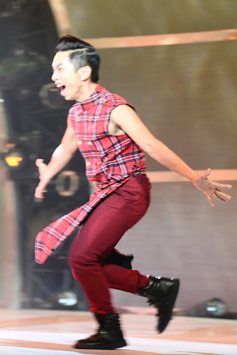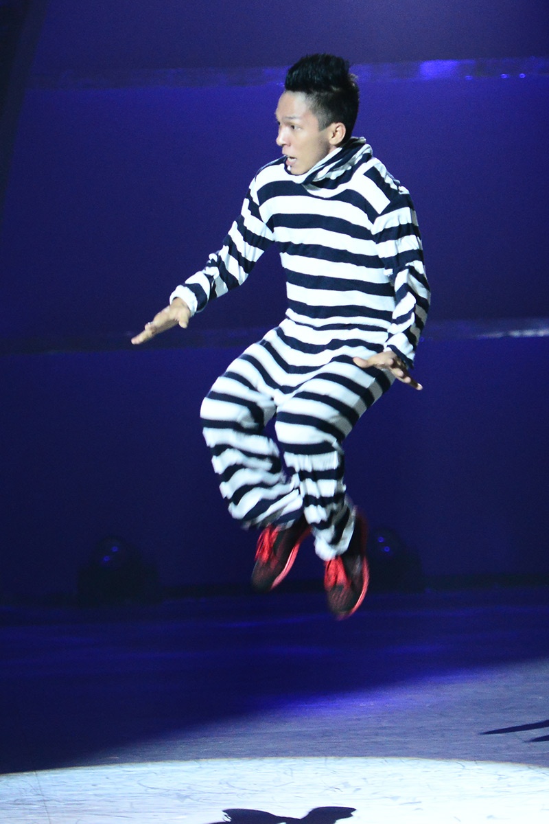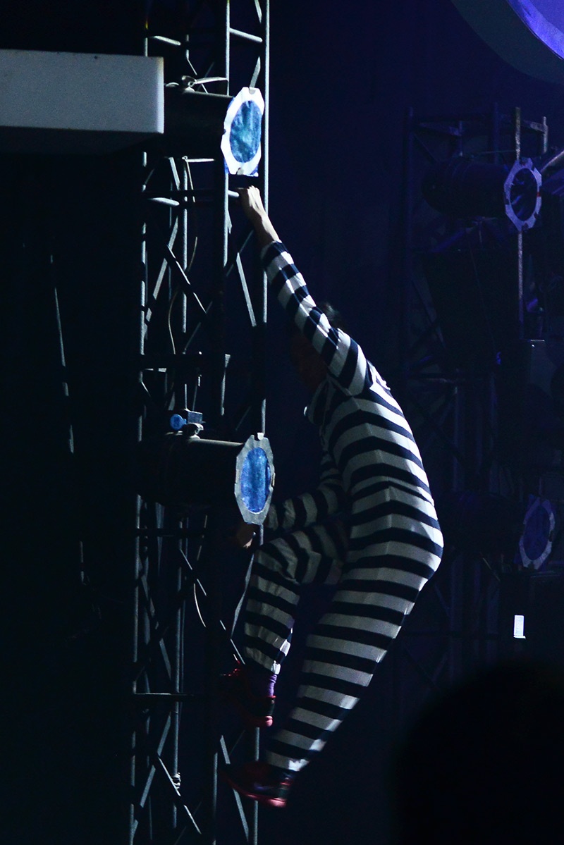 Hoàng Minh tiếp tục làm khán giả phải bất ngờ khi trở thành một chú ngựa vằn đáng yêu, nhún nhảy trên sân khấu, thậm chí còn leo lên dàn đèn đầy tinh nghịch. |