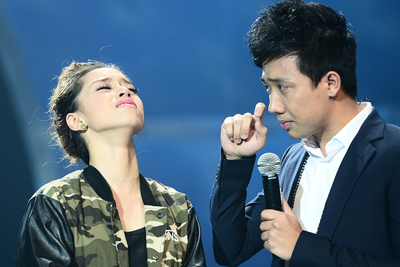 Trong khi đó Trấn Thành để nước mắt chạy dài trên gương mặt. |