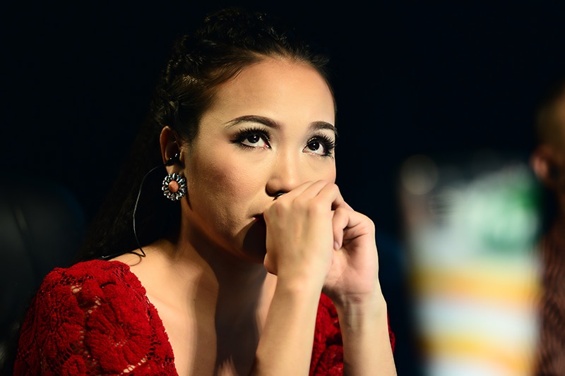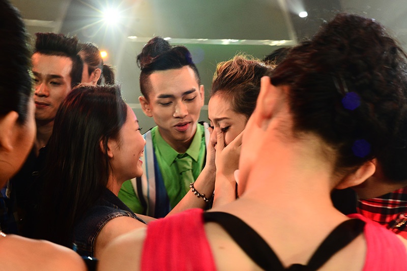 Thanh Bùi xuống sân khấu chia buồn cùng người bị loại và động viên các thí sinh còn lại. |
