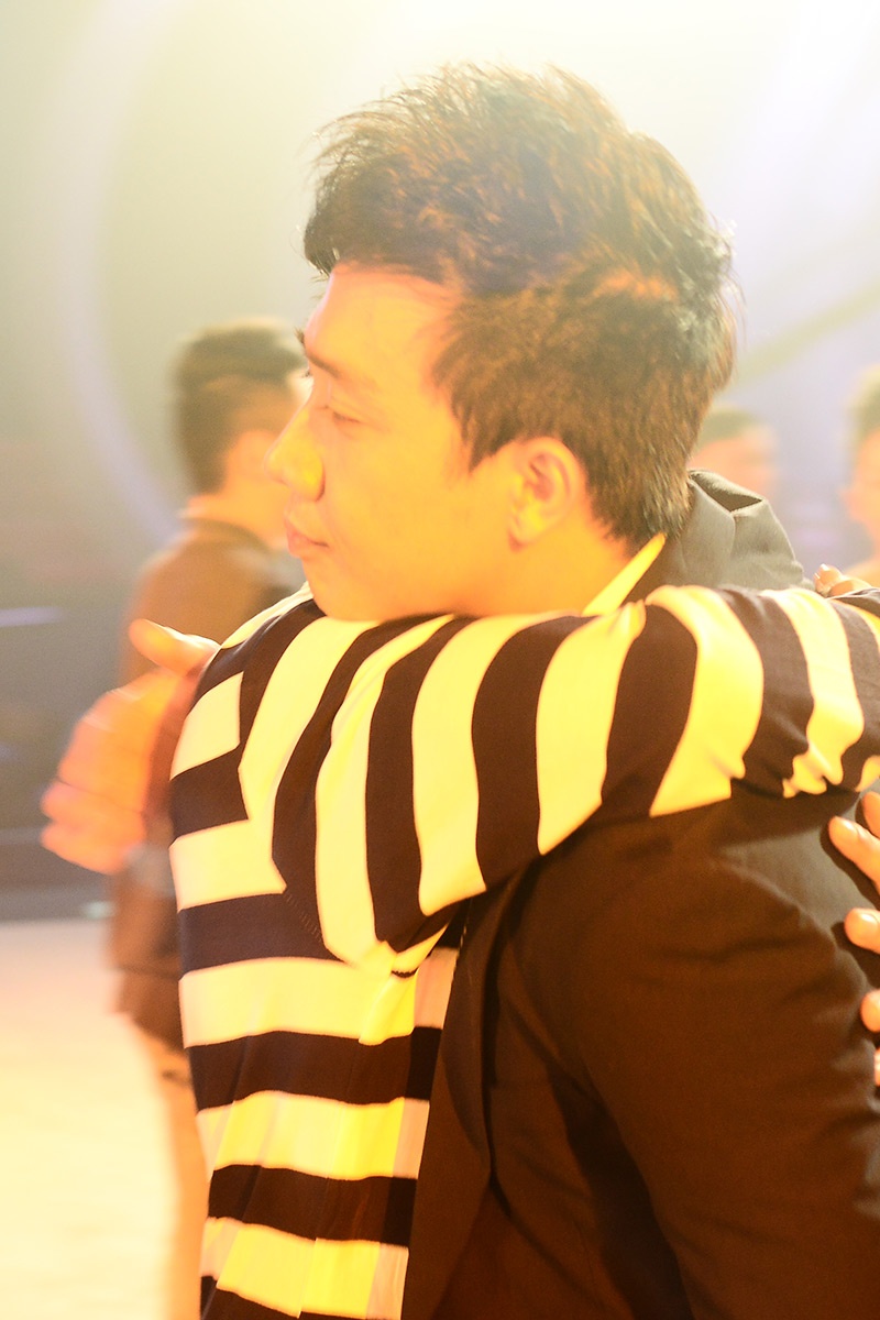 John Huy Trần ôm lấy Hoàng Minh và tự lau nước mắt cho mình. |