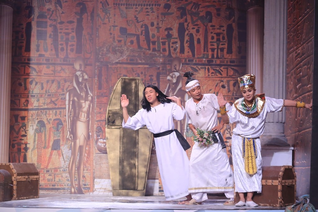 | Trong lúc đào mộ, xác ướp hoàng đế Ai Cập bất ngờ sống dậy khiến 2 kẻ trộm sợ hãi tột độ. Tuy nhiên, cả 2 vẫn cầu xin tài sản để có cơ hội cải tà quy chính. "Cô giáo Khánh" từng nổi lên nhờ các clip online nói về thầy cô, đối lập với nhanh nhạy của Trấn Thành và Hoàng Phi, anh thả nét duyên trầm để cân bằng. |