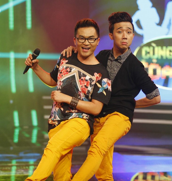 | Ngồi trên ghế nóng cùng Tấn Beo, Trấn Thành cho biết tâm lý anh khá thoải mái: “Thành rất hãnh diện khi được mời làm giám khảo của chương trình. Thành không mang tâm lý nặng nề về việc chấm điểm mà chỉ là một người khán giả bình thường và sẽ đại diện cho khán giả nói lên những cảm xúc của mình khi xem phần trình diễn của các đội chơi”. |