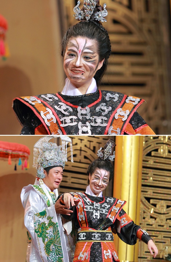 Lần đầu tiên Việt Hương vào vai hoàng hậu với trang phục đẹp mắt, sang trọng nhưng lại mang tội… ngoại tình. Cùng tham gia tiểu phẩm được phóng tác từ 3 chàng lính ngự lâm huyền thoại với Việt Hương là Tiết Cương.