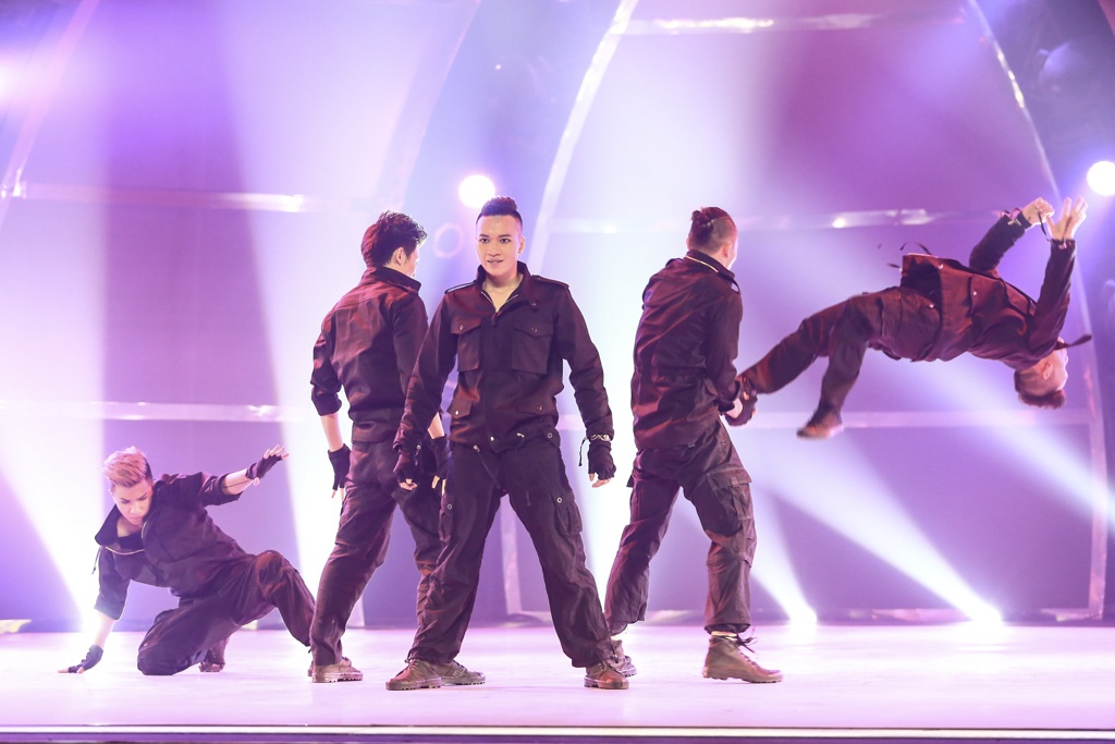 | Hà Lê biên đạo tiết mục hip hop cho top 10 nam. Khán giả lẫn ban giám khảo đều trầm trồ thán phục và khen ngợi "bài nhảy quá chất". |