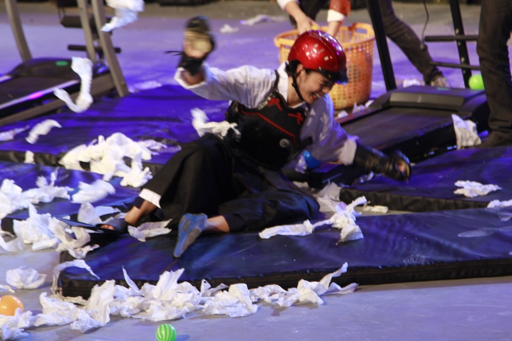 | Bị cố định trên chiếc vòng xoay và buộc phải “bơi trong không gian”, thế nhưng sự dí dỏm trong cách thể hiện bài hát lẫn những động tác hình thể theo từng giai điệu đã khiến sáng tác Son của Đức Nghĩa mang một sắc thái hoàn toàn mới, đặc biệt nhất từ trước đến nay. Đây là thử thách khiến Ngô Kiến Huy được dịp thể hiện sự quá khích khi ào ạt tấn công hai đồng nghiệp bằng những quả bóng nước. |