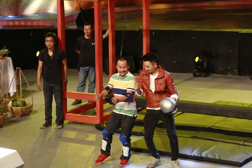 Trong khi đó, Tiến Đạt và Hoàng Rapper cũng hào hứng không kém khi lần đầu được quay như chong chóng. Sự cộng hưởng từ MC, người chơi lẫn khán giả đã mang đến một tiết mục độc đáo, có phần “hoảng loạn” từ vòng thi đối đầu trực tiếp này. Đây cũng là phần thi nhận được lời khen ngợi từ cả ba thành viên ban giám khảo lẫn sự cổ vũ nhiệt tình từ khán giả tại trường quay.