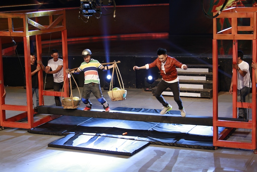 Bình tĩnh và lạc quan trước sự gập ghềnh của chiếc cầu lắc lư, từng gánh hàng đã nhanh chóng được chuyển đi trong sự cổ vũ nồng nhiệt của khán giả và sự thán phục của ban giám khảo dành cho thông minh và sáng tạo của Tiến Đạt.