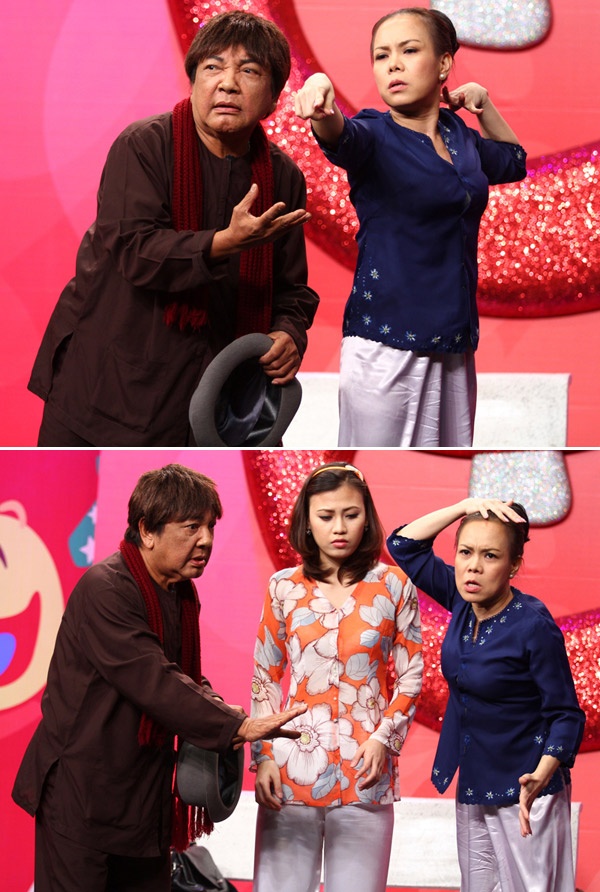| Việt Hương và Phú Quý trong tiểu phẩm Ai là trai đẹp? |