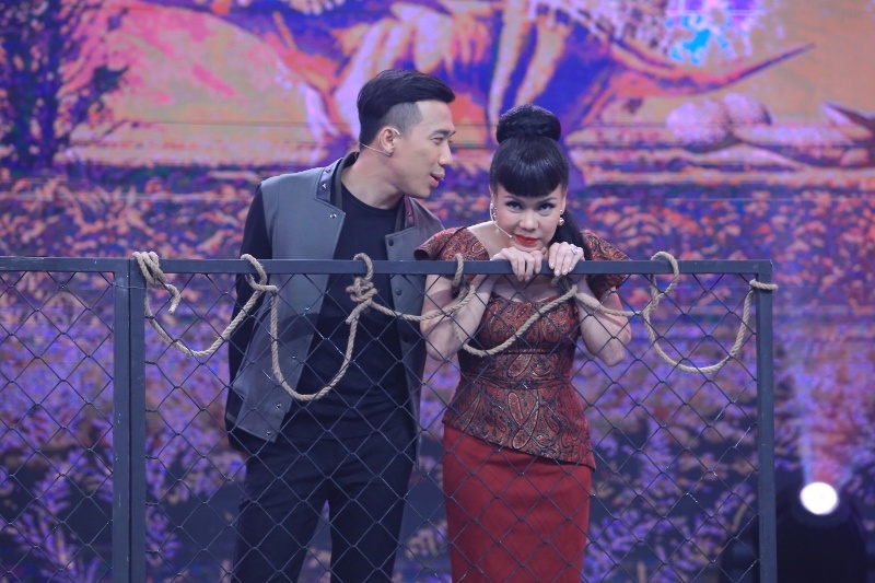 MC Việt Hương và Trấn Thành thừa nhận thử thách này quá cam go nhưng cũng giả vờ ủng hộ Kinh Quốc vượt qua khó khăn. |
