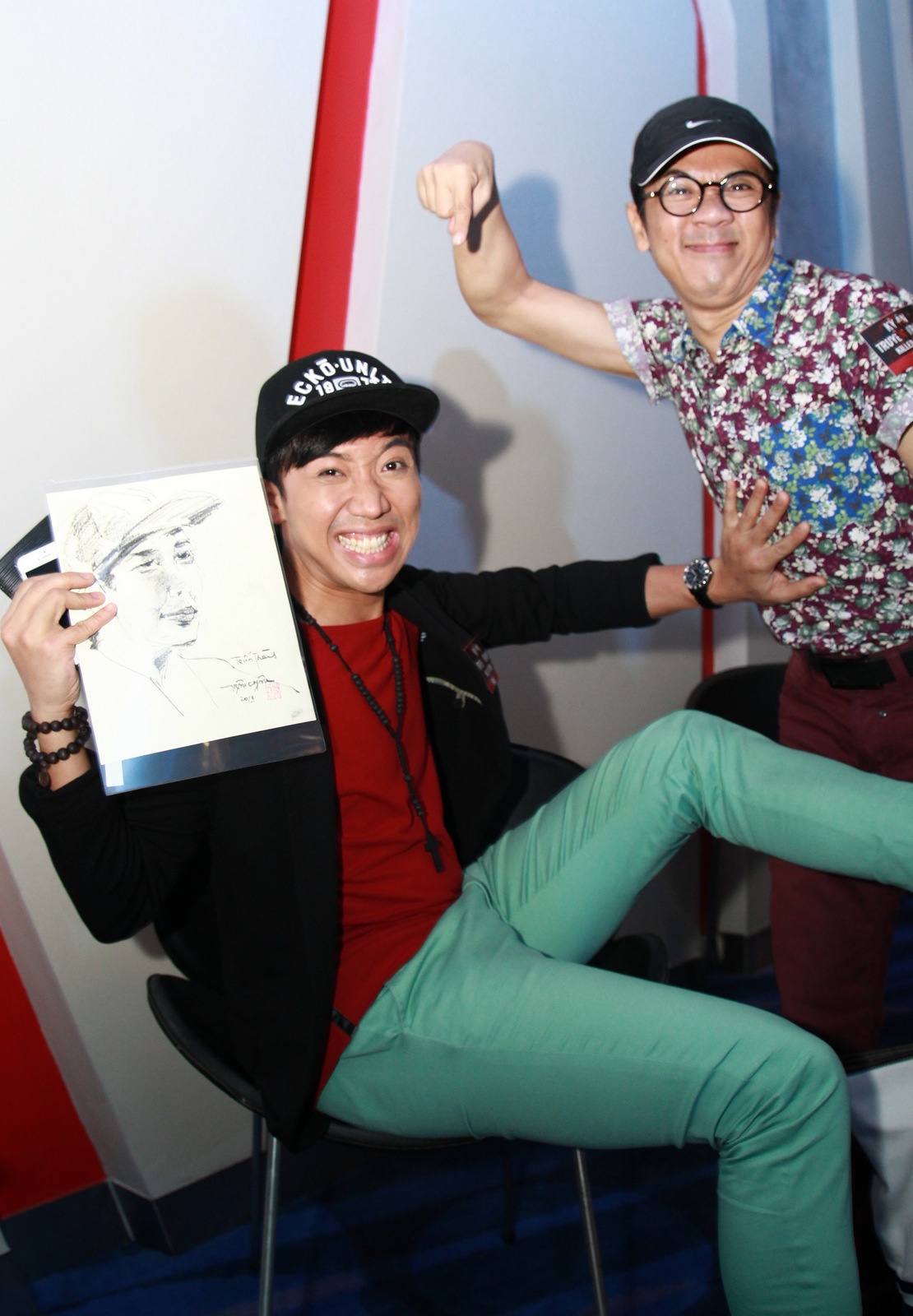 Thuộc lớp sư phụ đi trước trong nghề diễn nhưng Thành Lộc khá nhí nhảnh và trẻ trung khi liên tục trêu chọc Trấn Thành đang ngồi yên để hoa sĩ vẽ ký họa...
