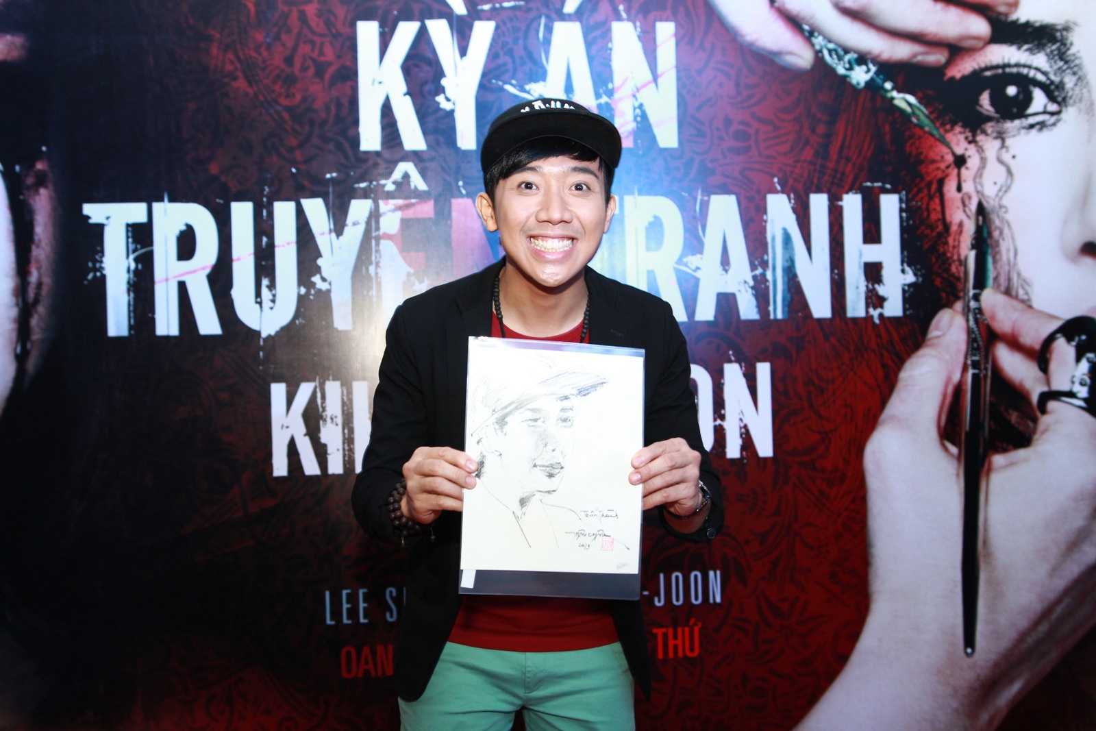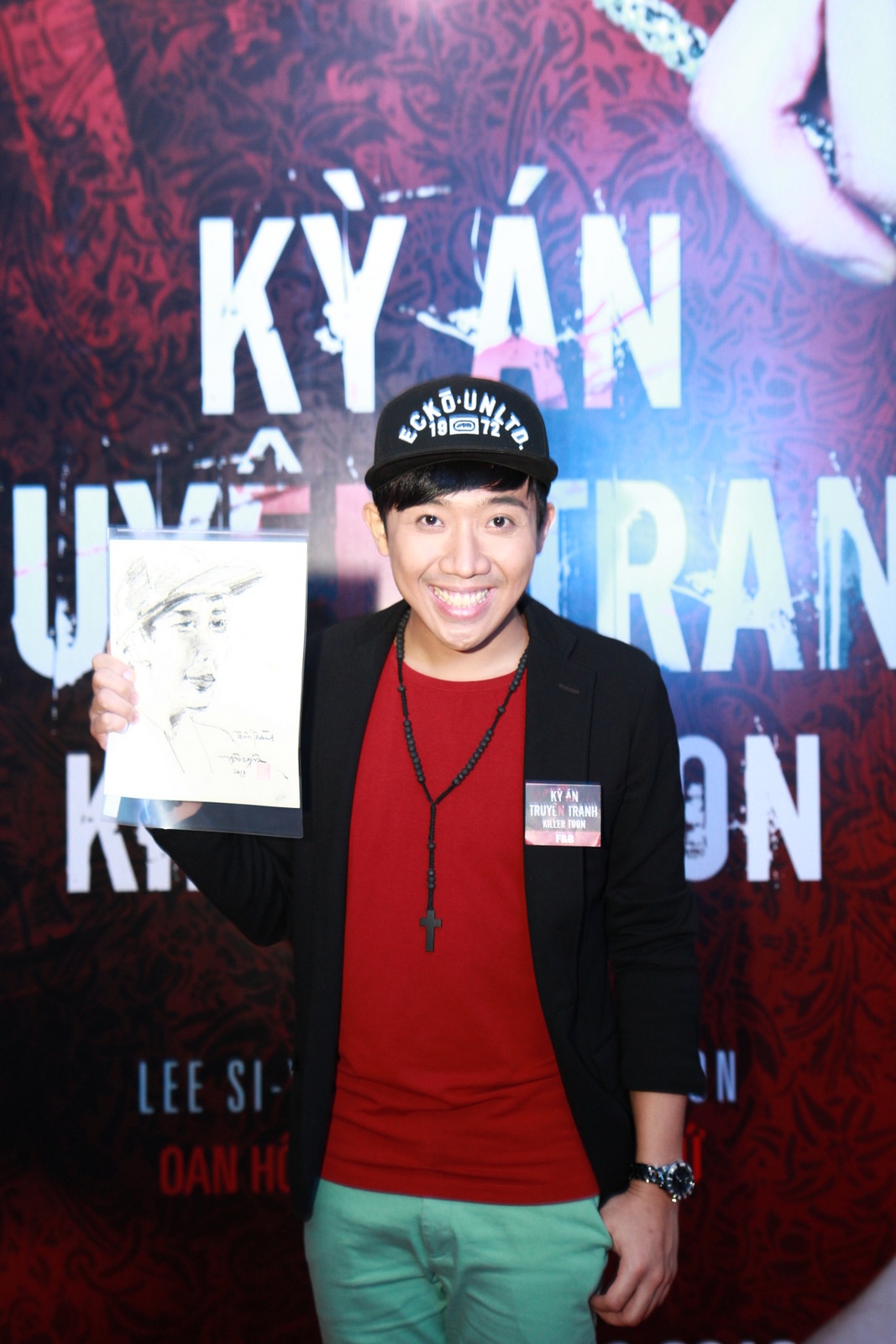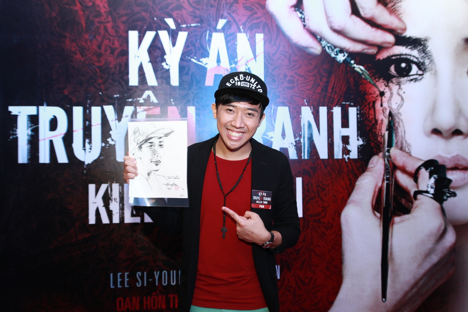 MC The Voice Kids háo hức tham gia buổi công chiếu "Killer Toon" và nhận những bức tranh ký họa đặc biệt.