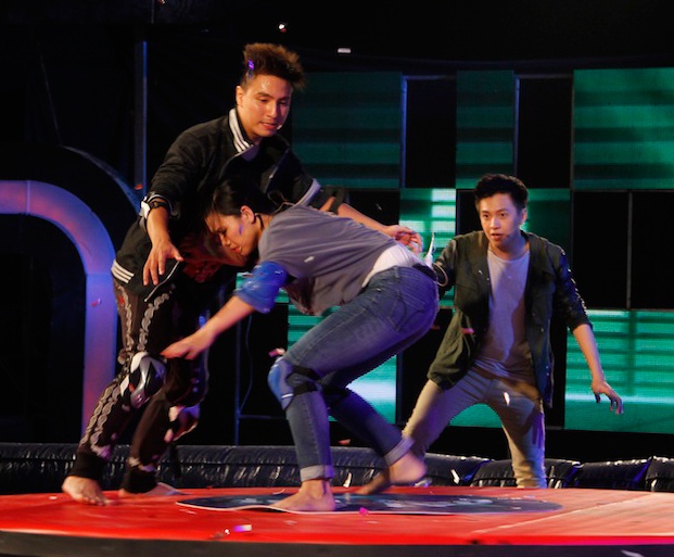 | Trong vòng thi đối kháng đầu tiên, nếu Ngân Hà tỏ ra mạnh mẽ và bản lĩnh khi giữ được giọng hát trước những vòng xoay liên tục quay, Chí Thiện lại thay thế giọng hát bằng tiếng hét liên hồi của mình. Nhạc một nơi và lời một nẻo, nhưng sự hoảng sợ của anh chàng lại mang đến nhiều tiếng cười sảng khoái cho ban giám khảo lẫn khán giả tại trường quay. |