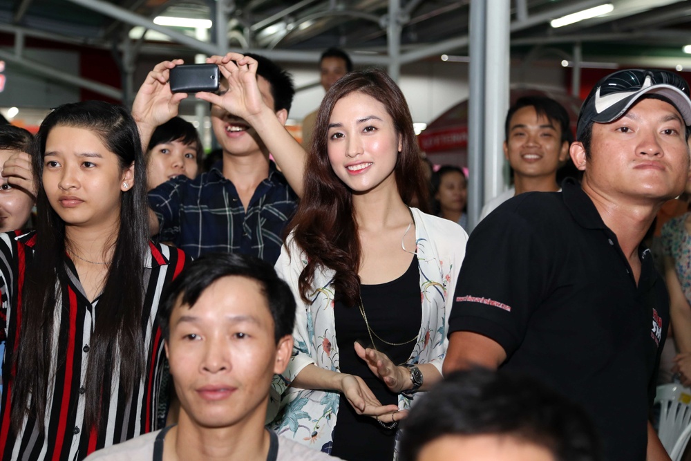 | Nhan sắc của Mai Hồ nổi trội khi đứng giữa đông đảo khán giả. |