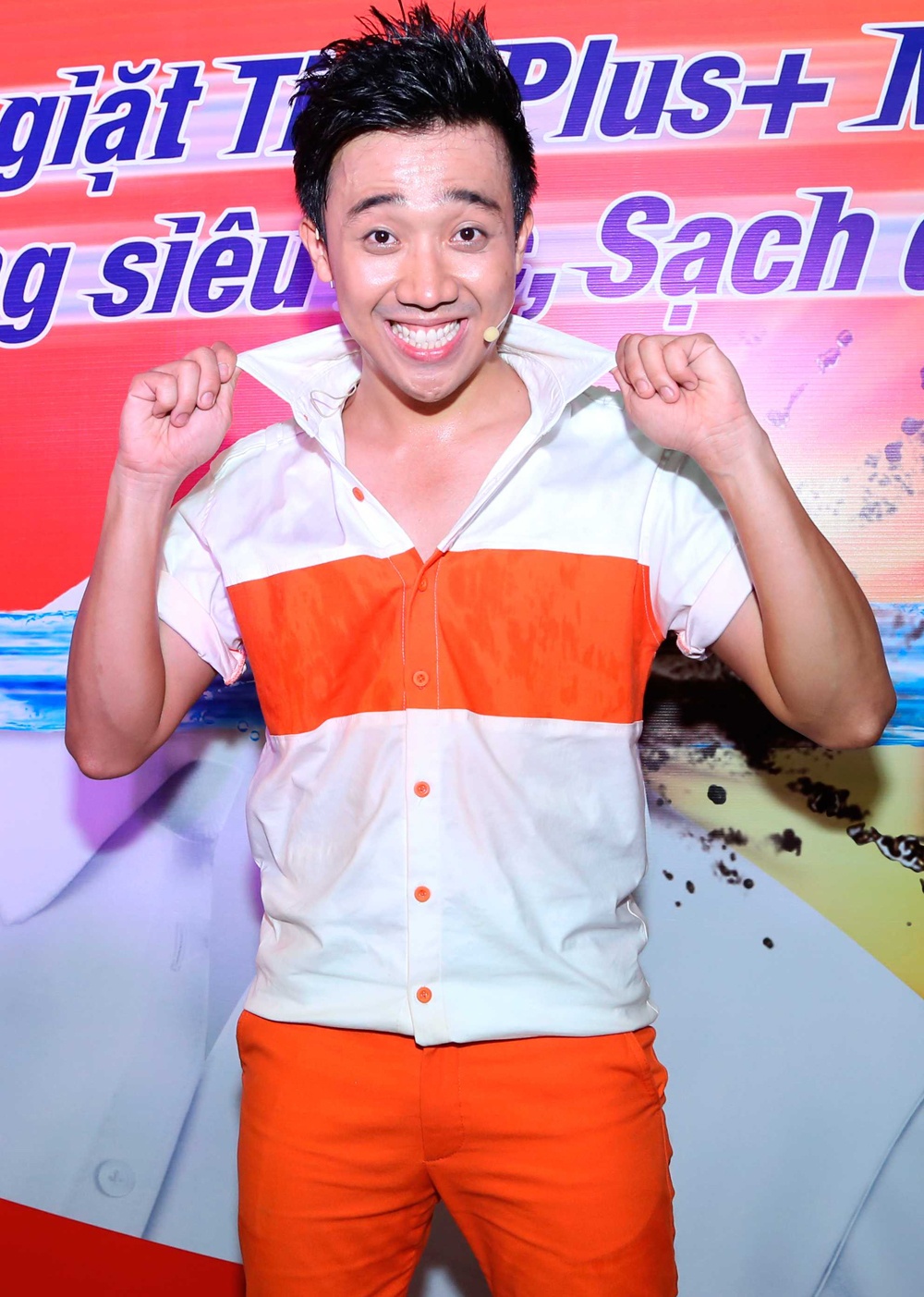 | Trấn Thành cũng đảm nhận vai trò giám khảo cuộc thi giặt đồ siêu tốc cho các chàng trai. |