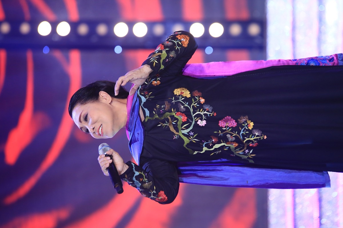 | Việt Trinh lấy nước mắt của khán giả khi thể hiện bài hát da diết Sầu đâu quê ngoại. Diễn xuất nhập tâm của NSƯT Phi Điểu giúp tiết mục của Người đẹp Tây Đô thêm cảm xúc. |