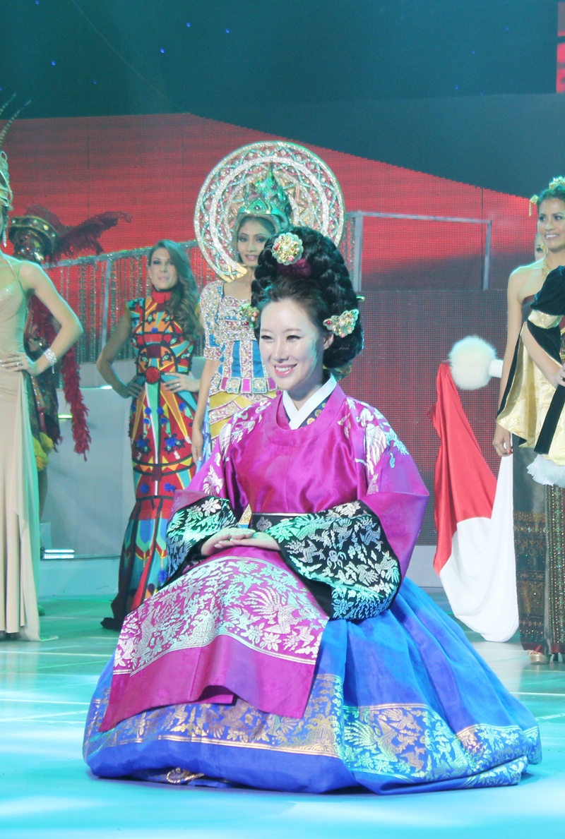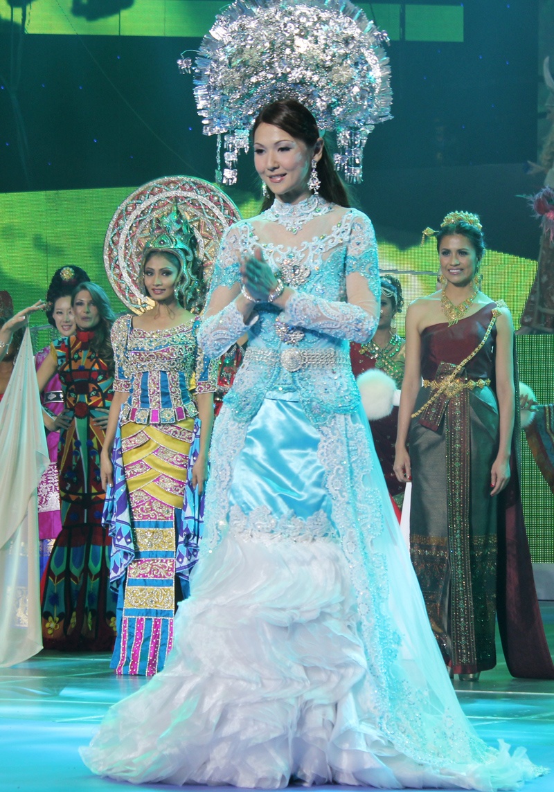 | Đại diện Việt Nam nổi bật ở phần thi trang phục dạ hội. |